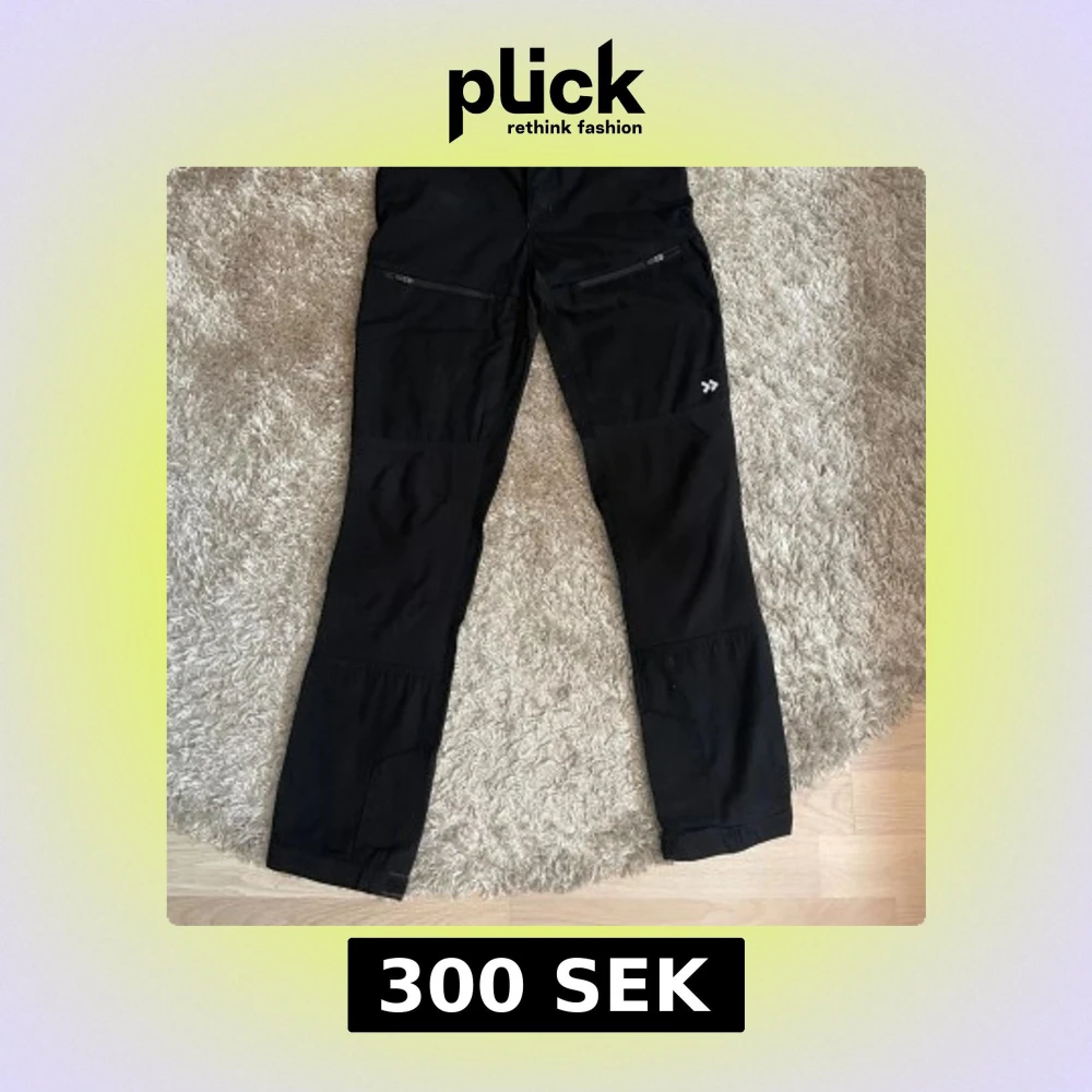 Svarta täckbyxor från Funk med raka ben och praktiska dragkedjor på framsidan. Byxorna har bälteshällor och förstärkta partier vid knäna. Perfekta för utomhusaktiviteter under kyliga dagar. Snygg och funktionell design med diskret logga på benet.