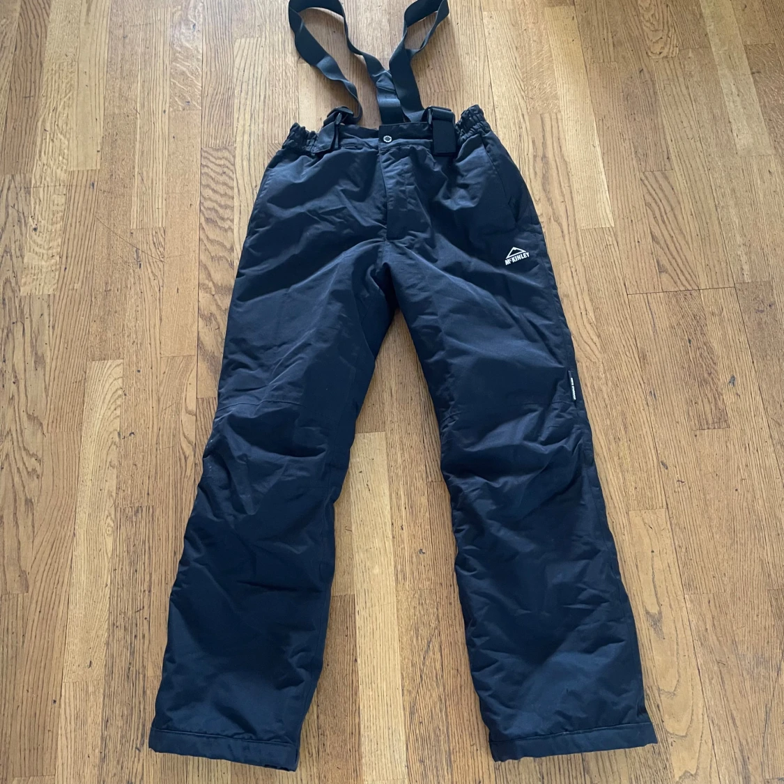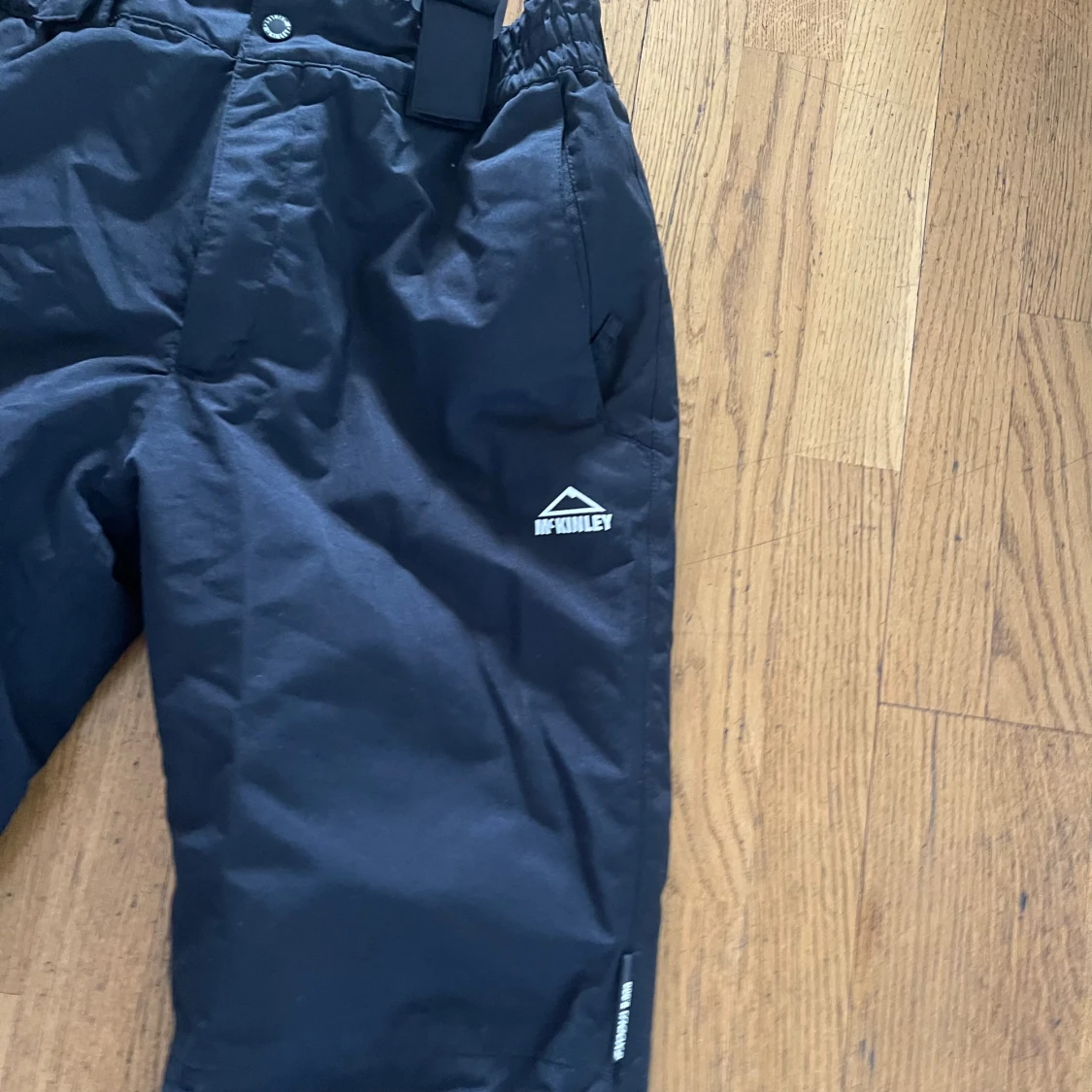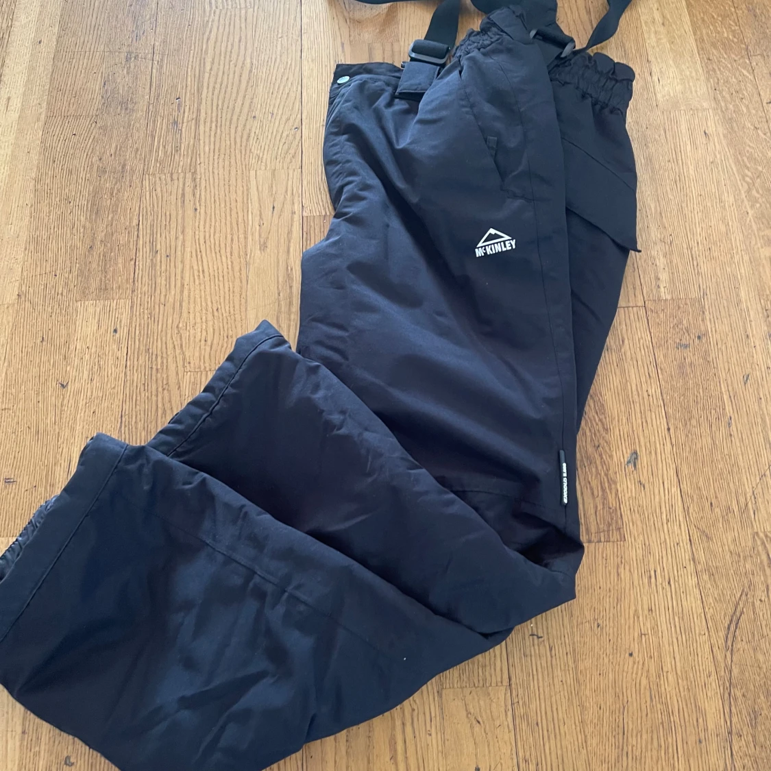Svarta täckbyxor från McKinley med justerbara hängslen och elastisk midja. Byxorna har raka ben och är tillverkade i ett slitstarkt syntetmaterial som står emot kyla och vind. Perfekta för vinterns alla äventyr i snön.