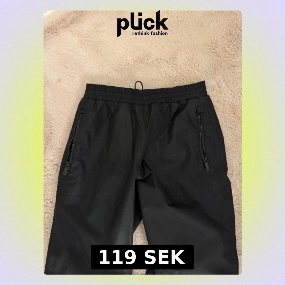 Svarta täckbyxor med elastisk midja och raka ben. Byxorna har två praktiska fickor med dragkedjor framtill och är tillverkade i ett vattenavvisande material, perfekta för kalla dagar utomhus. Snygg och enkel design som funkar till vinterns aktiviteter.