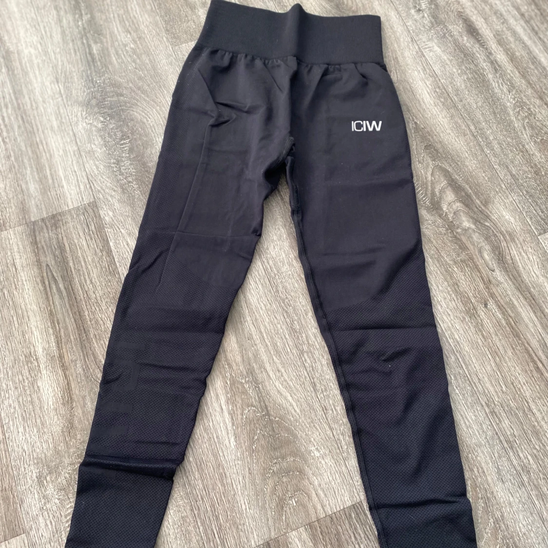 Snygga svarta tights från ICANIWILL med hög midja och ribbad detalj vid midjan. Perfekta för träning med en tight passform och stilren design. Logotypen är diskret placerad på benet.