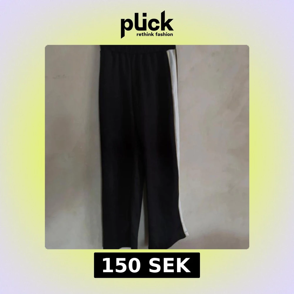 Snygga svarta byxor med vita ränder längs sidorna. De har en elastisk midja för extra komfort och en avslappnad passform. Perfekta för en sportig look eller en avslappnad dag.
