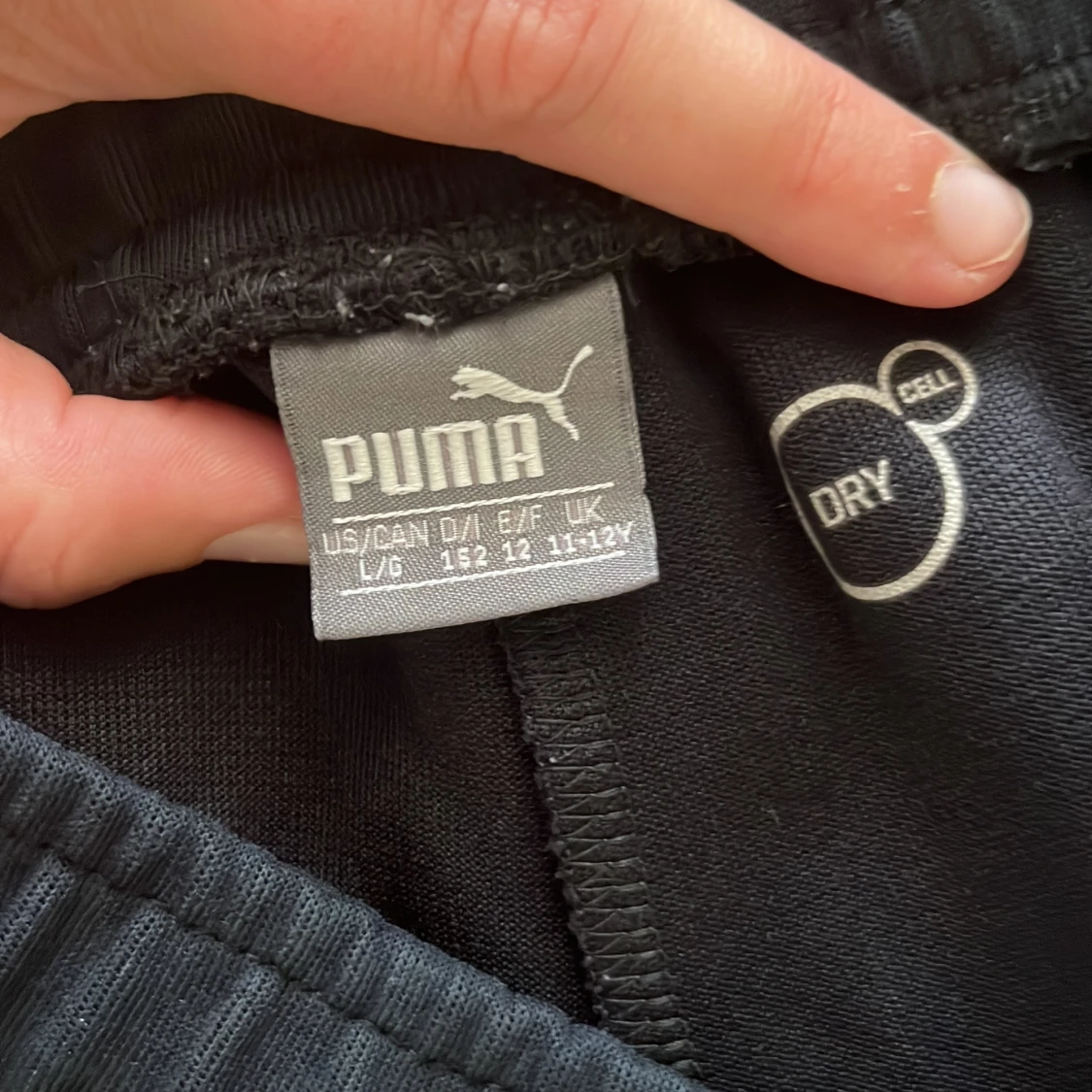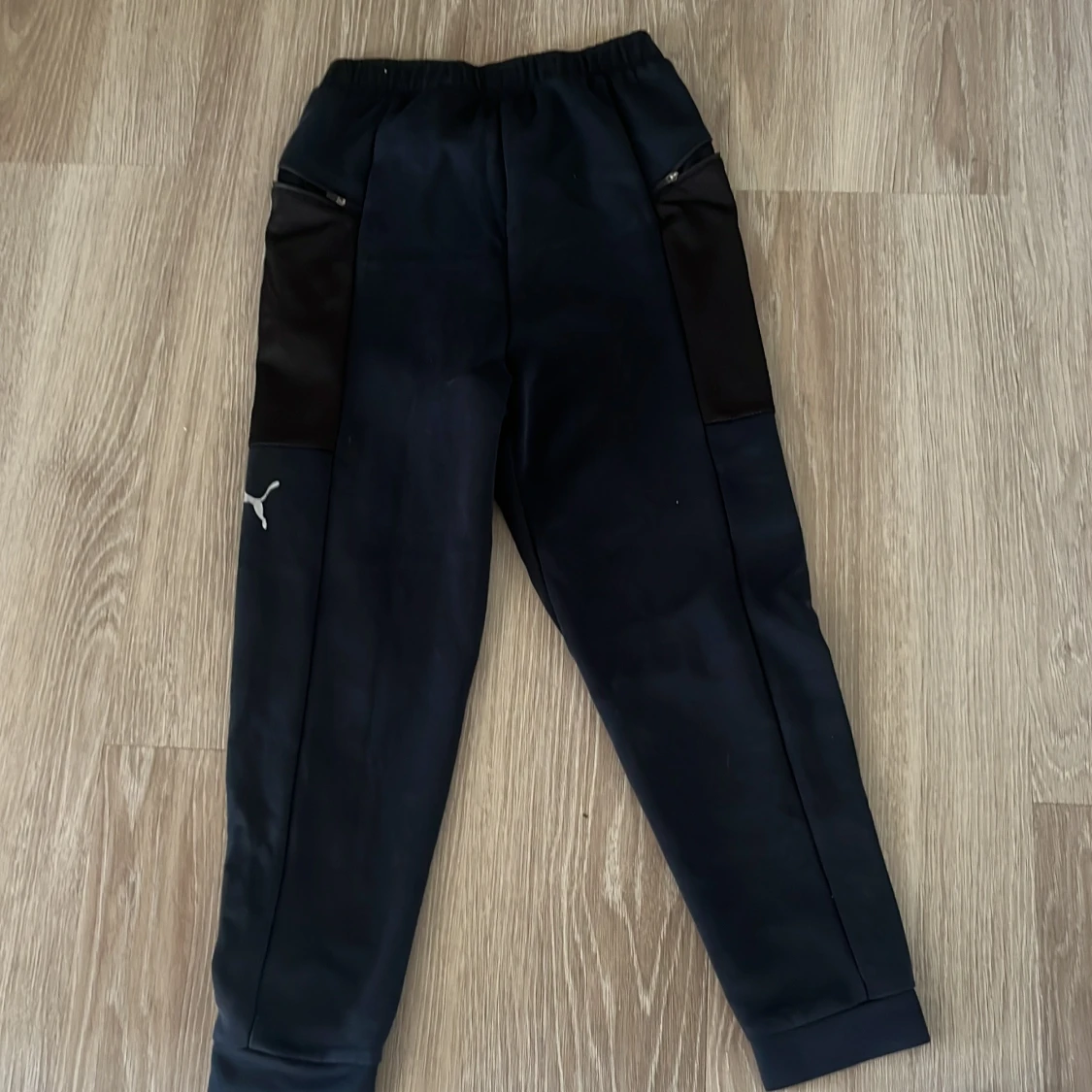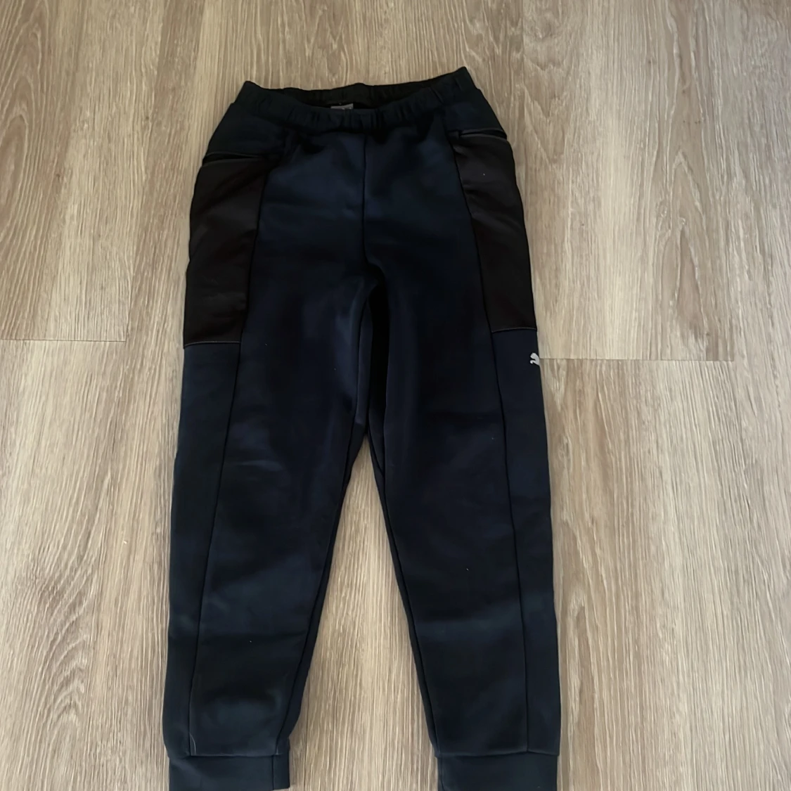 Svarta träningsbyxor från Puma med elastisk midja, dragkedjefickor och snygga paneler i mörkare svart. Byxorna har Puma-logga på benet och är gjorda i ett funktionsmaterial som andas. Perfekta för sport eller chill. Passar för 10-12 år i storlek 146-152