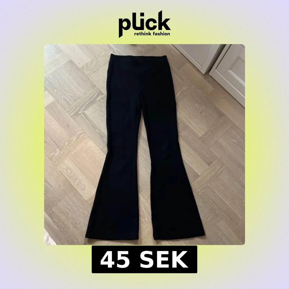 Svarta byxor från Lindex med utsvängda ben. Byxorna har en hög midja och är sydda i ett stretchigt material som ger en bekväm passform. Perfekta för dig som gillar en trendig och stilren look.