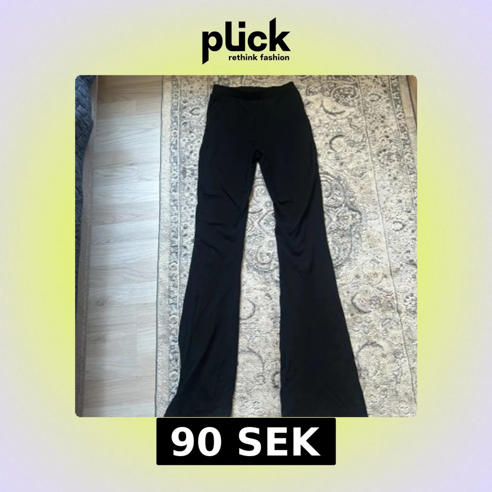 Svarta byxor med utsvängda ben och hög midja. Tillverkade i mjukt bomullsmaterial, perfekta för en stilren och bekväm look. Passar dig som gillar en klassisk och enkel stil.