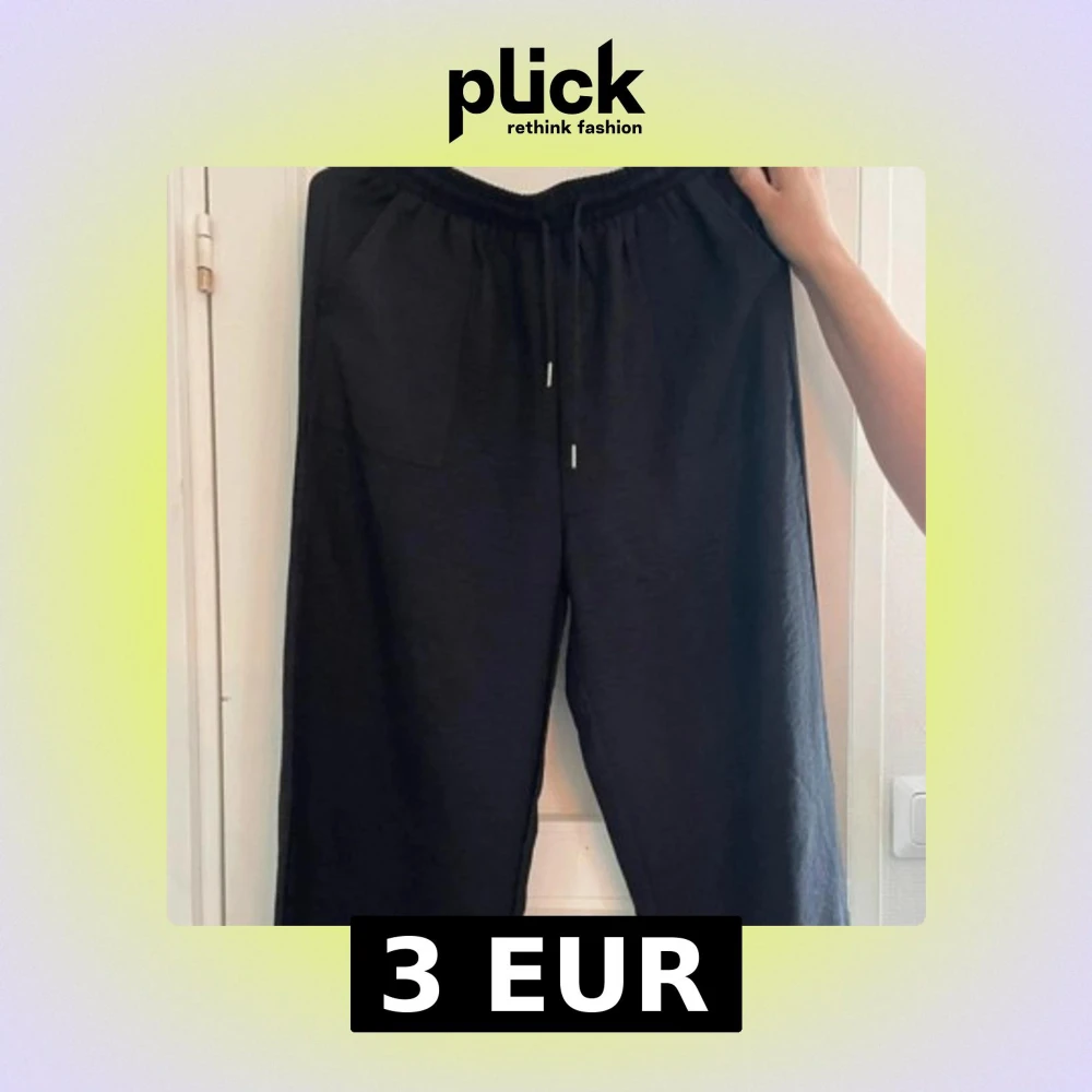 Svarta byxor med bred passform och resår i midjan samt snörning framtill. Byxorna har två stora fickor framtill och är tillverkade i ett mjukt tyg som ger en avslappnad look. Perfekta för en chill och stilren outfit.