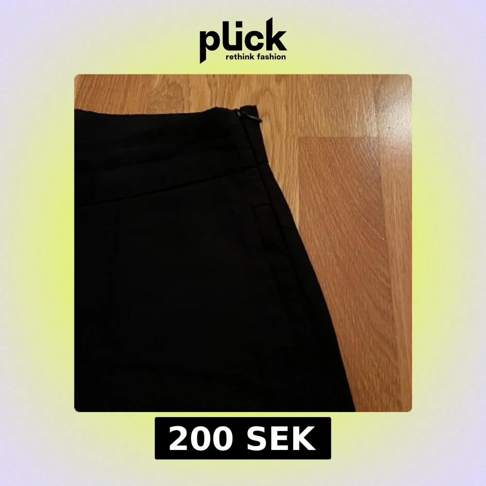 Svarta byxor från Lindex i storlek 38 med hög midja och vida ben. Byxorna har diskreta fickor bak och dragkedja i sidan. Snygg minimalistisk look som passar till många olika stilar. Materialet känns mjukt och lätt.