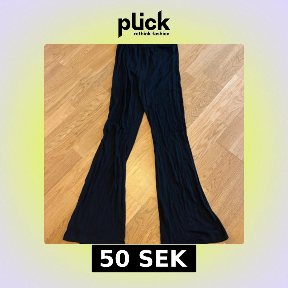 Svarta byxor med riktigt vida ben och skön, flowy känsla. Perfekta om du gillar en avslappnad och trendig stil. Mjukt material och elastisk midja gör dem superbekväma att bära hela dagen.