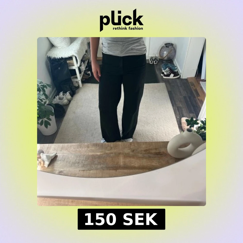 Säljer ett par svarta jeans med hög midja och rak, vid passform. Byxorna har klassisk look och är perfekta för en stilren outfit. Materialet känns mjukt och följsamt, vilket gör dem bekväma att bära hela dagen.