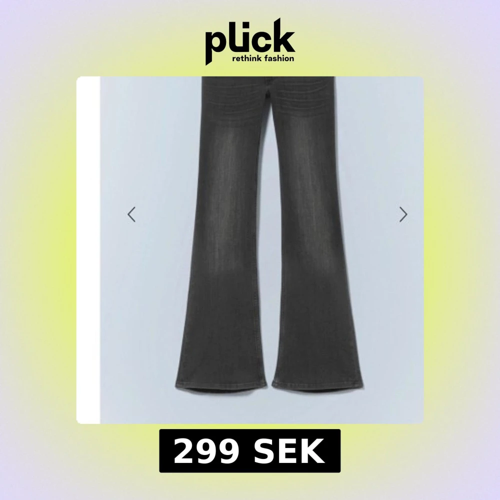 Snygga gråsvarta bootcut jeans med en dödskalleknapp i guld. Helt nya från cheap monday, säljer på grund av att dom inte passar mig i storlek. Dom är otroligt stretchiga och bekvämt material, storlek 27/32, skulle säga att det motsvarar en xs/s