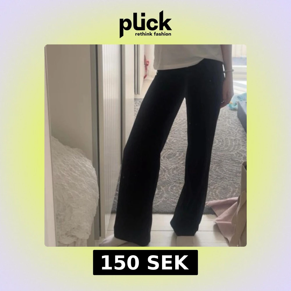 Säljer ett par svarta byxor från Bik Bok i storlek 34. Byxorna har en hög midja och vida ben för en chill och trendig look. De är gjorda i ett mjukt tyg som känns skönt mot huden och har dragkedja i sidan för enkel påklädning.