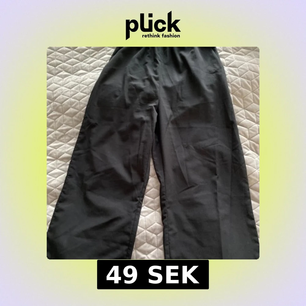 Svarta byxor från H&M i storlek 158. De har en bred, elastisk midja med rynk och vida ben för en chill och trendig look. Perfekta att styla med en crop top eller hoodie. Materialet känns lätt och skönt mot huden.
