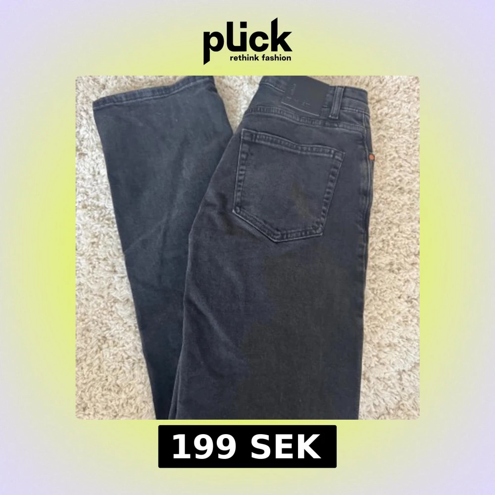 Snygga svarta jeans från Gina Tricot i modellen Mid Wide. Jeansen har medelhög midja, raka vida ben och klassisk femficksdesign. Tillverkade i mjuk denim med knapp och dragkedja framtill. Perfekta för en trendig och avslappnad look.