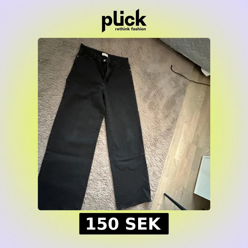 Säljer ett par svarta jeans från Lindex i modellen Jackie. Byxorna har breda ben och klassisk femficksdesign med knapp och dragkedja framtill. Perfekta för dig som gillar en avslappnad och trendig stil.