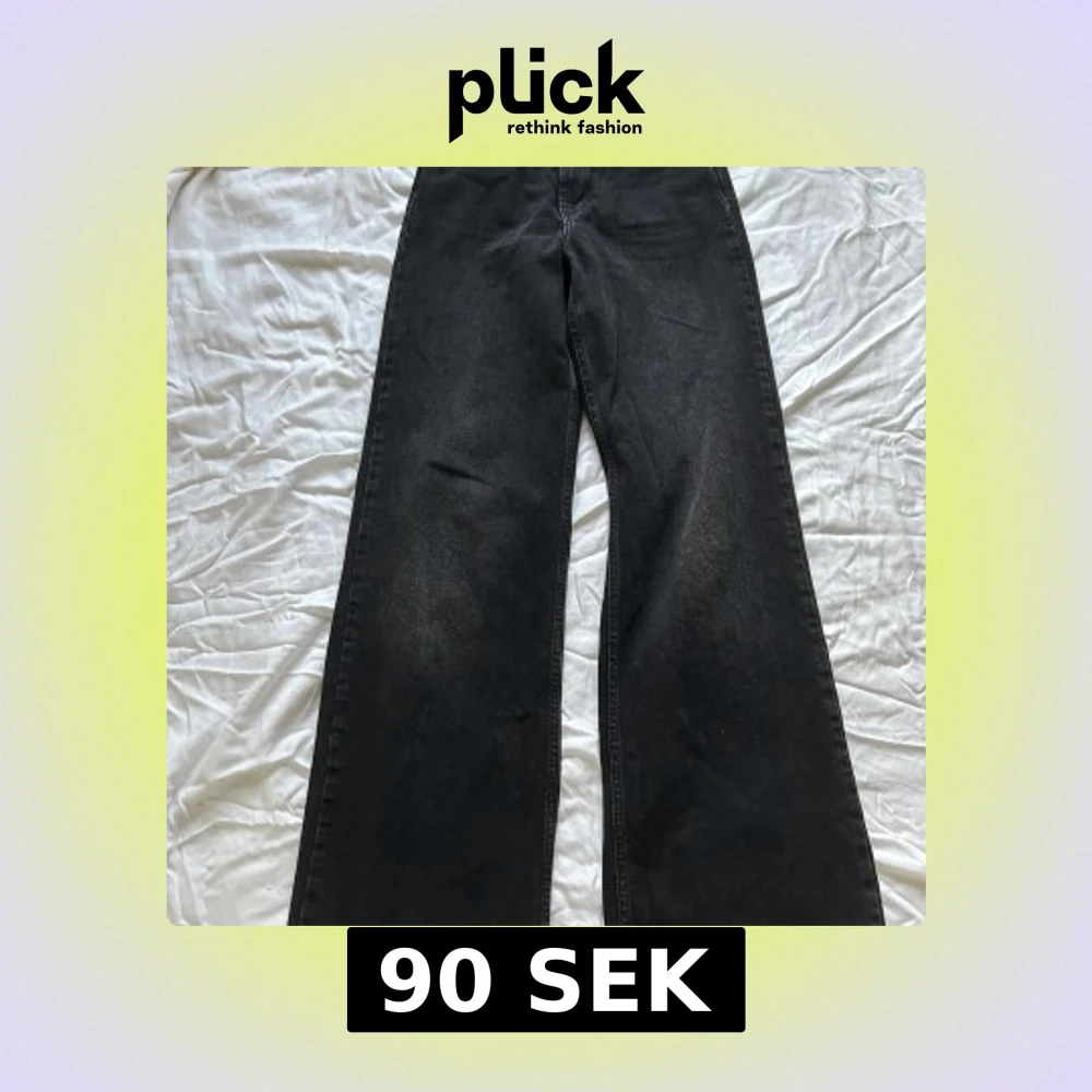 Säljer ett par svarta high rise wide leg jeans i 100% bomull. Byxorna har klassisk femficksdesign och raka, vida ben. Aldrig använda