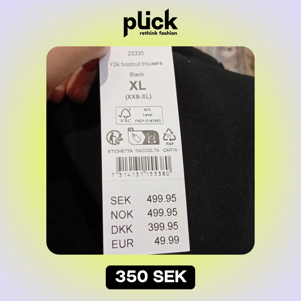 Snygga svarta Y2K bootcut byxor i storlek XL. De har en klassisk bootcut-stil som ger en retro vibe. Perfekta för både vardag och fest! Byxorna har knappar framtill och är tillverkade i ett bekvämt material som ger en smickrande passform. Oanvänd helt ny precis köpt. Storleken är inte direkt korrekt kontakta mig om mer info.