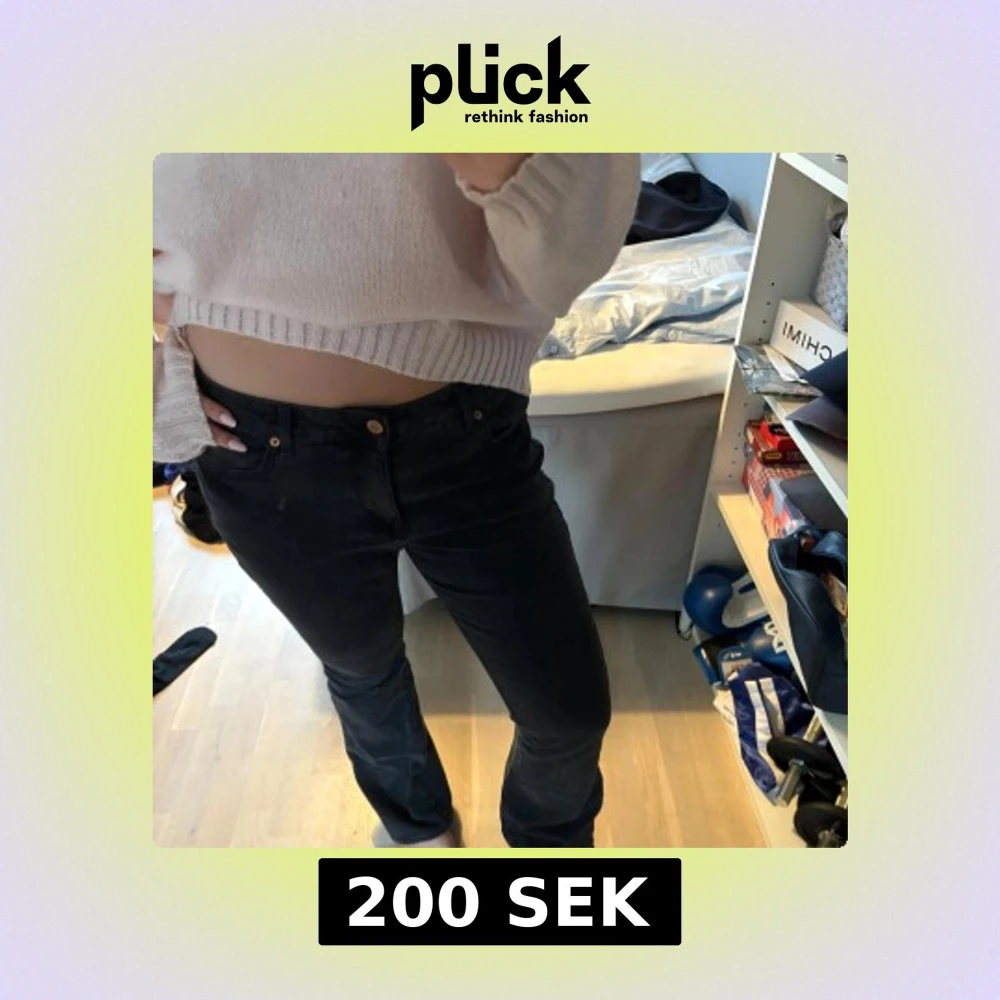 Snygga svarta jeans med bootcut-modell. Jeansen har en låg midja. Använda fåtal gånger.