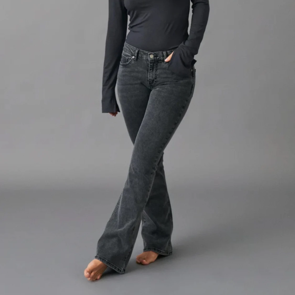 Så snygga lågmidjade bootcut jeans i en gråsvart färg från ginatricot!