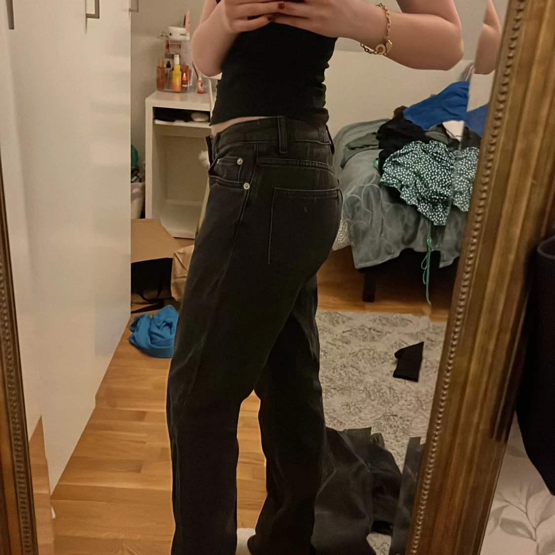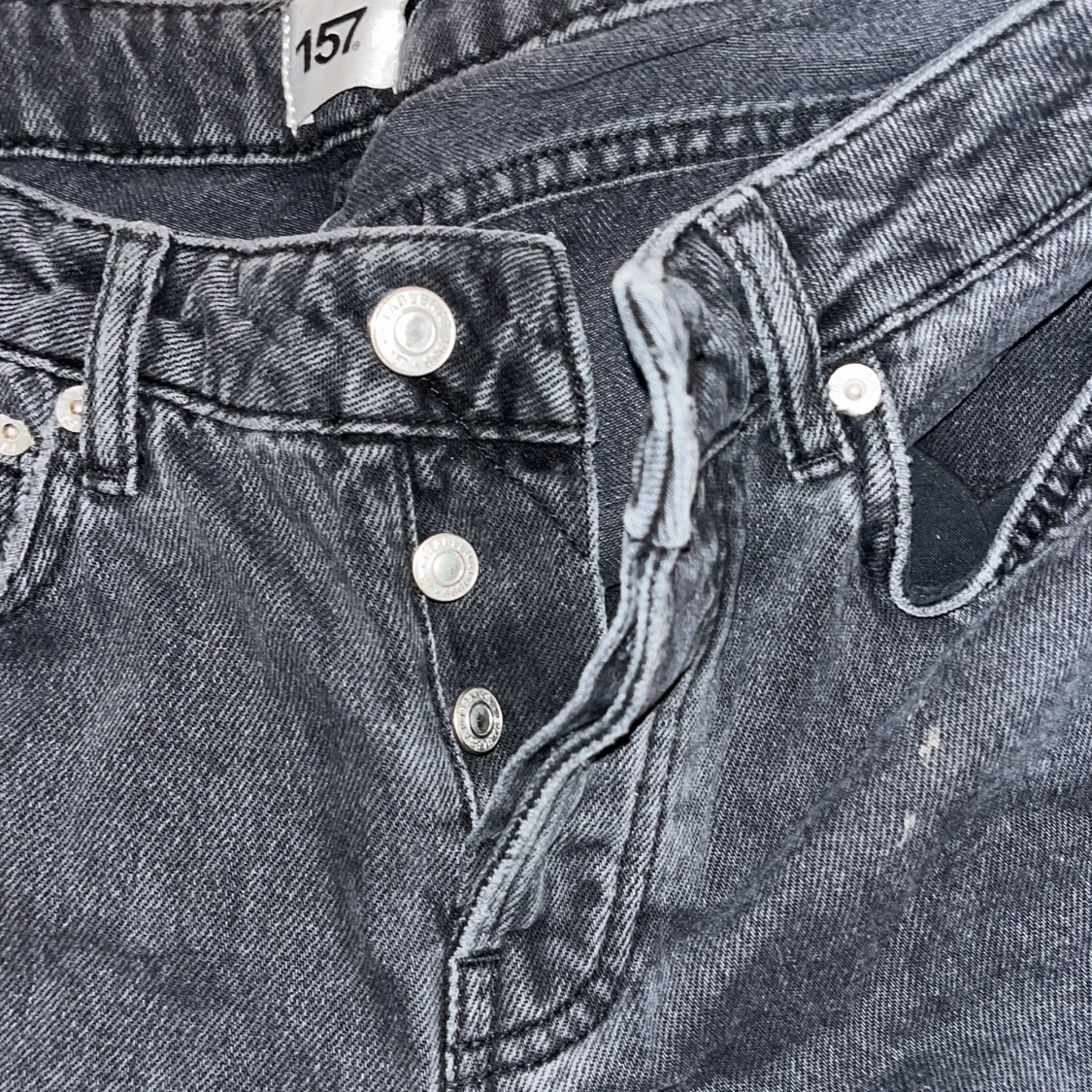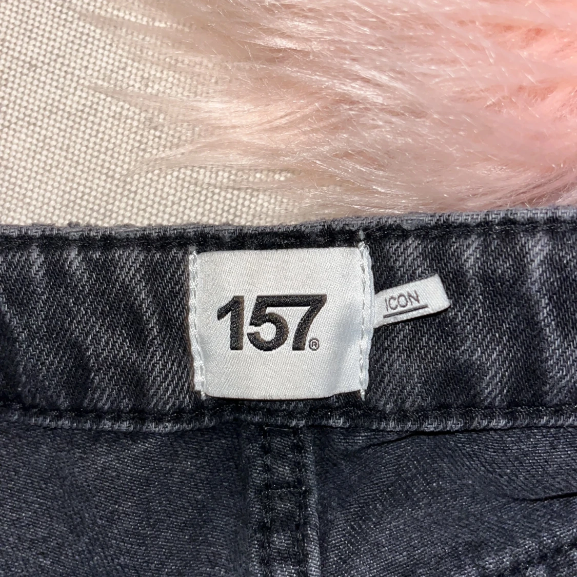 Snygga svarta jeans från 157 med en klassisk femficksdesign och knappgylf. De har en rak passform.Dom är lite slitna men inte så mycket.Skriv vid frågor💕