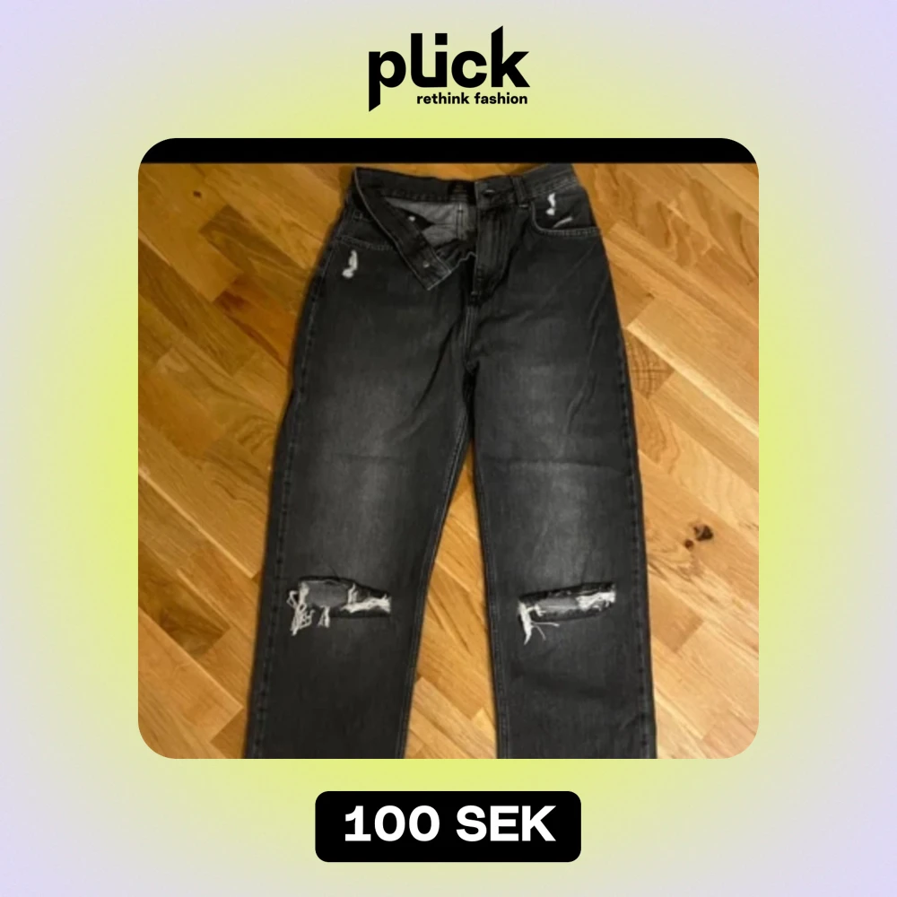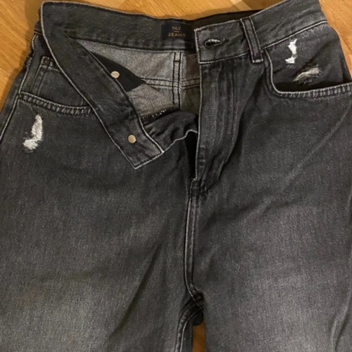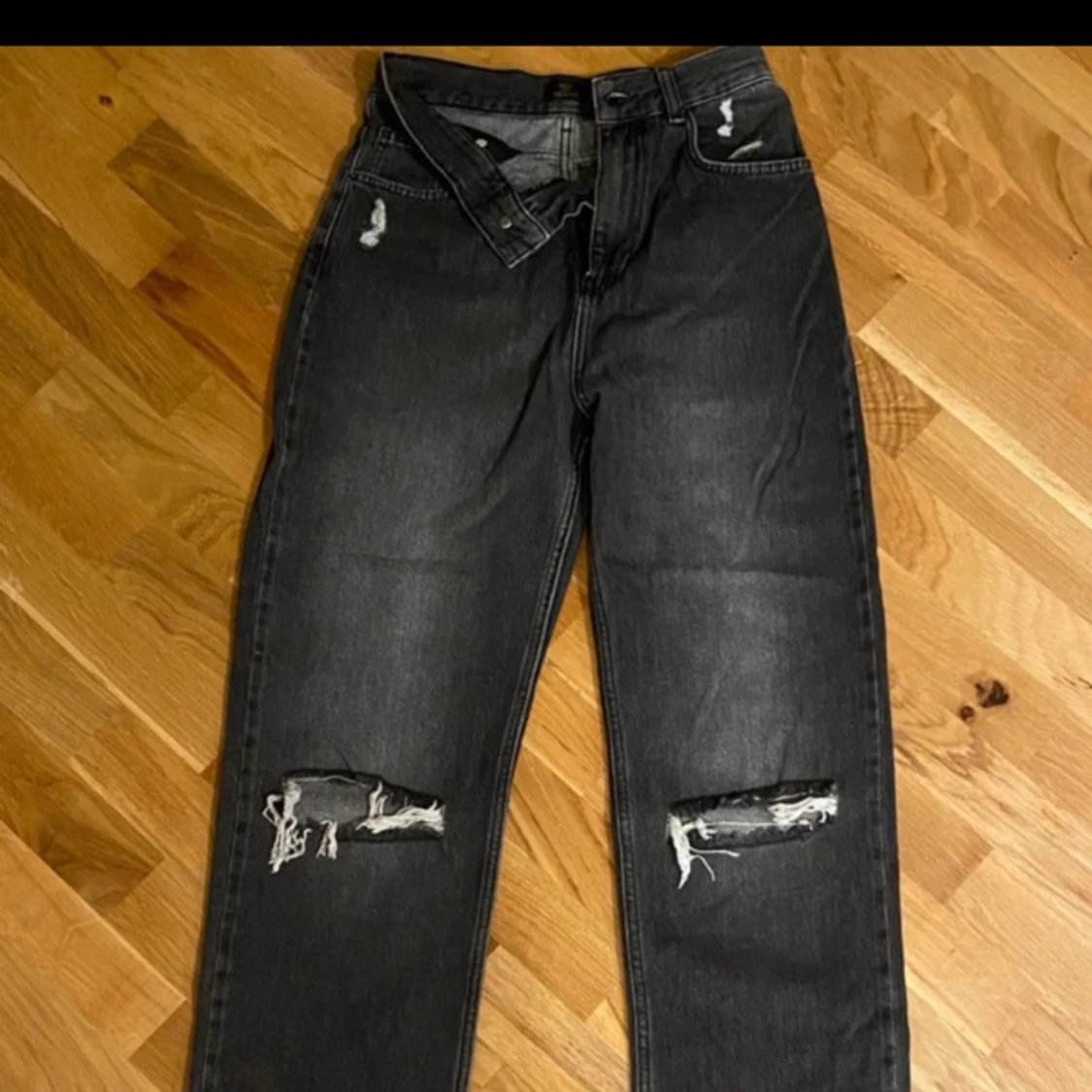 Svarta jeans från Nelly! Storlek 34! Revor! Loose fit NYSKICK Använda vid 2 tillfällen Högmidjade Raka ben Perfekt skick