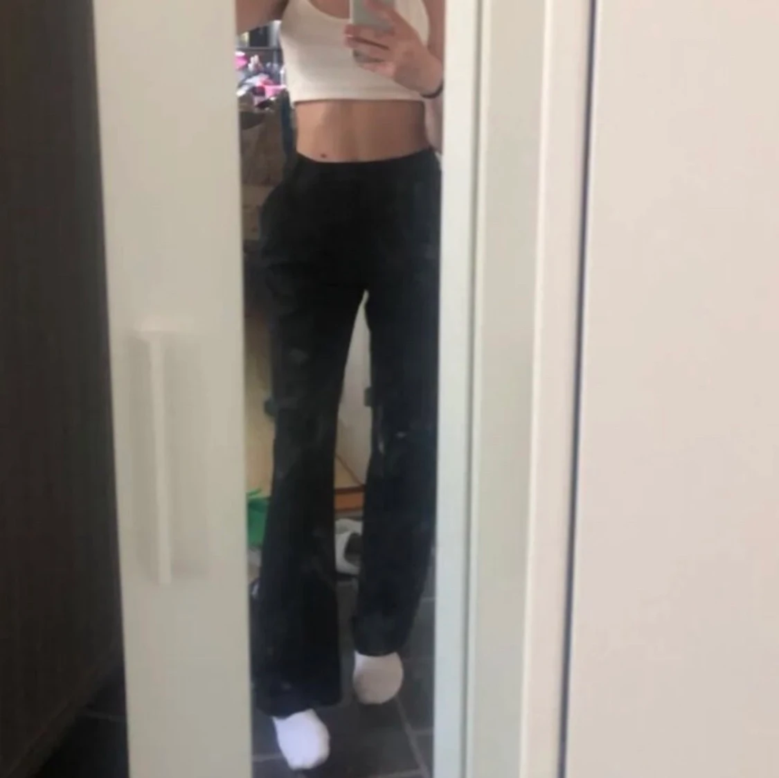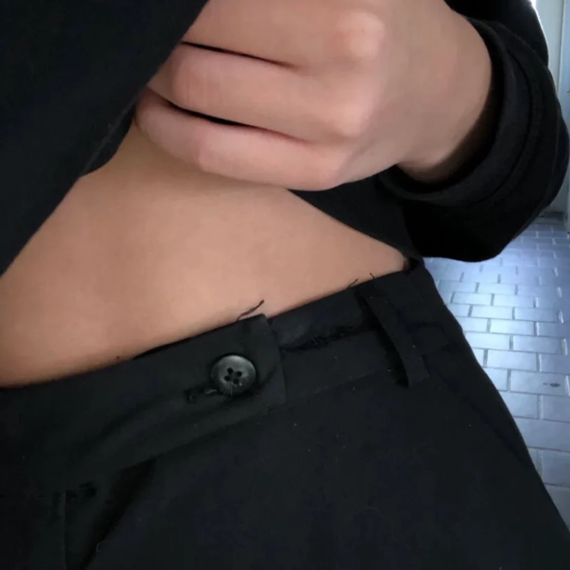 Säljer dessa kostymbyxor ifrån asos då de är för stora för mig, storlek 36 och har sytt in de på sidorna men går att sprätta upp om det önskas. De har en liten defekt brevid knappen då jag gjort hål för ytterliggare en knapp men inget som syns. Jag är 168