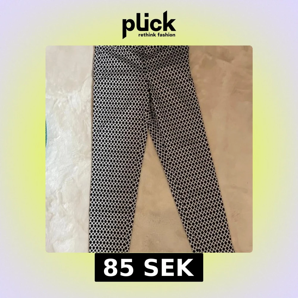Snygga svartvita byxor från H&M med ett unikt geometriskt mönster. 🖤🤍 Byxorna har en tight passform och är perfekta för att ge din outfit en trendig touch. Bomull 100%. Använda 2 gånger.
