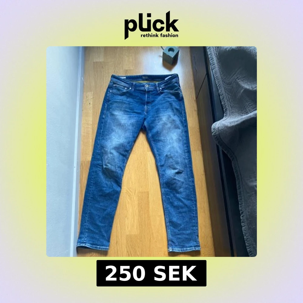 Säljer ett par klassiska blå jeans från Jack & Jones med färgen gul här och där kommer se ut som en gåendes Sverige flagga mammas men de kommer se snyggt ut. 10/10 kvalitet bara haft på lig fåtal gånger