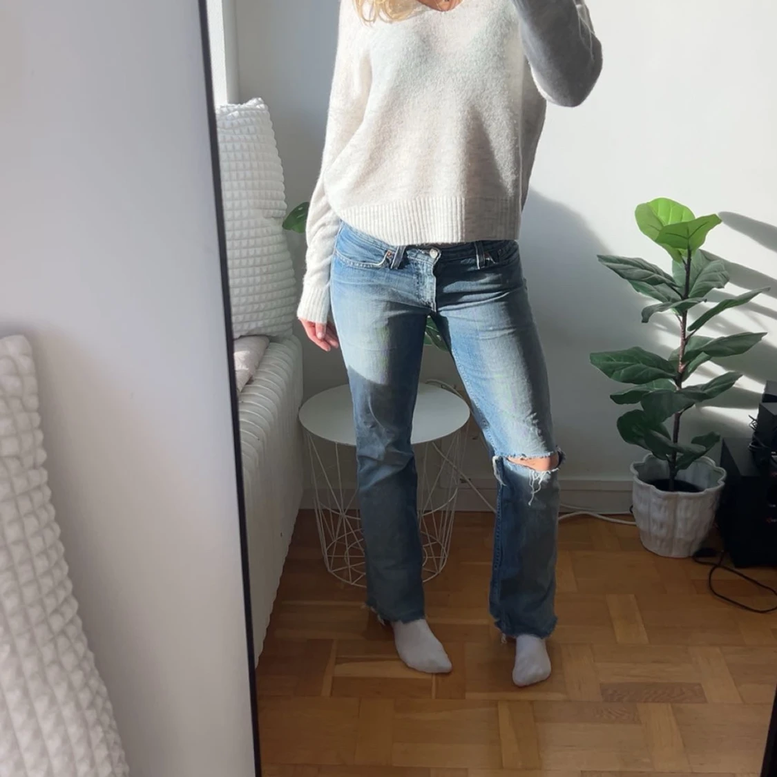 Low waisted levis jeans! Köpta på vinted för drygt ett år sedan. Jätte fina men dem passar inte mig längre! Skulle säga att det är i storlek S/eu36/L32W26/27. Det har små effekter nedtill (vilket dem hade när jag köpte de) dock är det inget som märks av vid användning! Lappen baktill har jag själv tagit bort då jag tyckte den skavde. INNERBENSLÄNGD: 73cm. MIDJEMÅTT (rakt över): 35cm