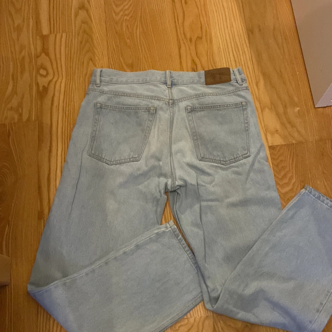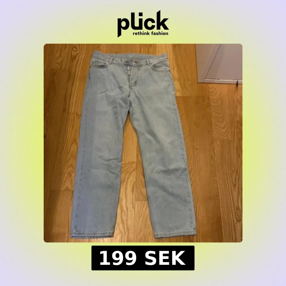 Säljer ett par ljusblå sweet sktbs jeans, de har knäppning med flera knappar framtill och är tillverkade i denim. Perfekta för en avslappnad och stilren look.