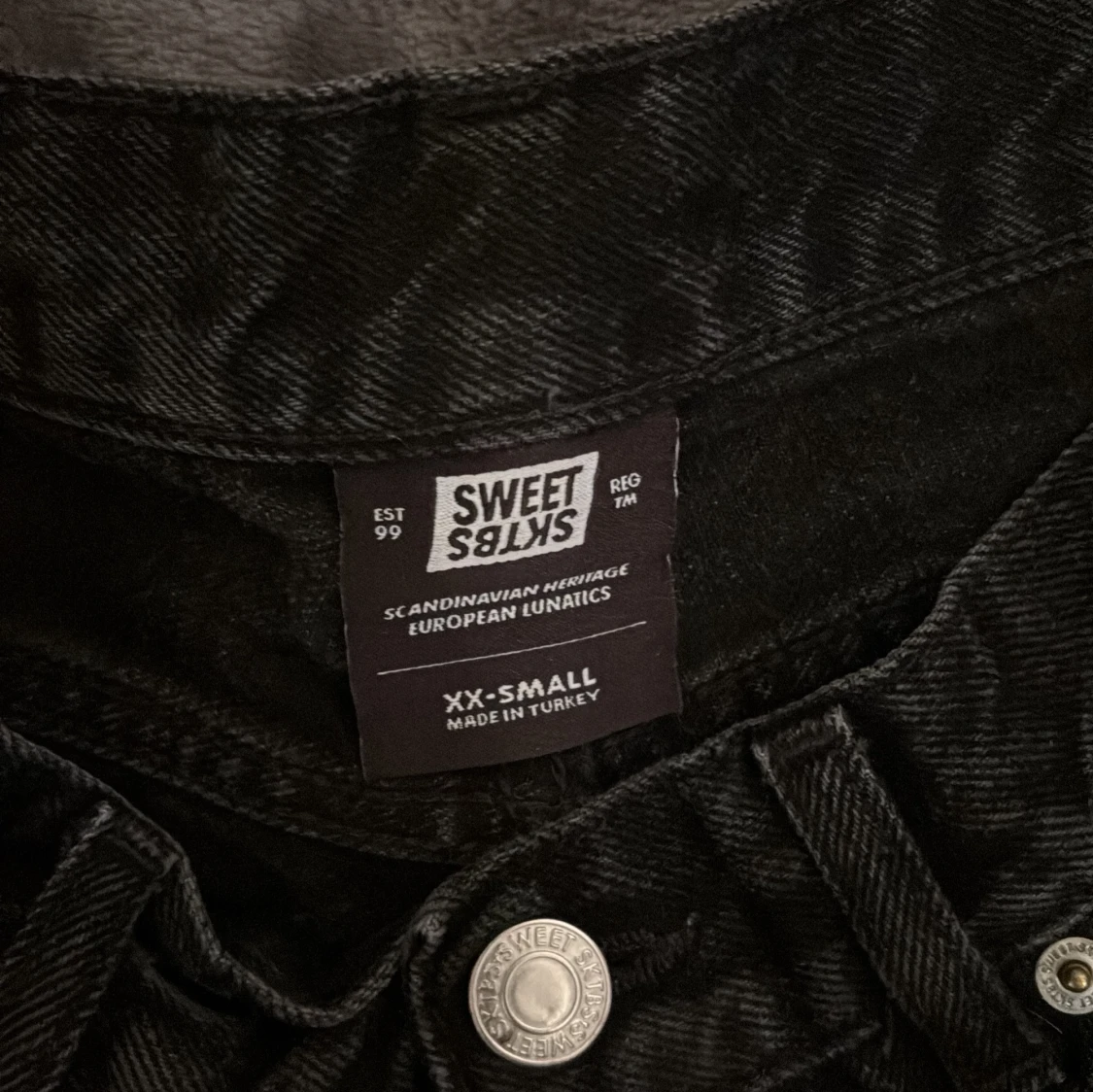 Snygga svarta jeans från Sweet Sktbs med broderad logga på fickan. De har en klassisk femficksdesign och knappgylf. Perfekta för en stilren look.