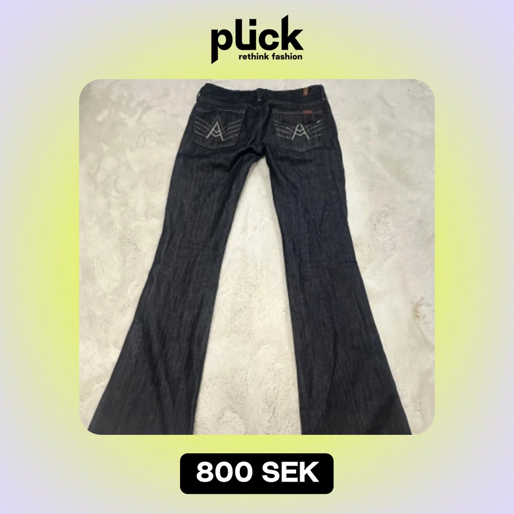 Säljer ett par skitsnygga Lågmidjade jeans från märket 7 for all mankind!💙de har glittriga bakfickor och utsvängda ben. De passar oss längre tjejer då innerbenslängden är 87cm, midjemåttet är 40cm. De är relativt strechiga!✨💙 nypriset var 3000kr