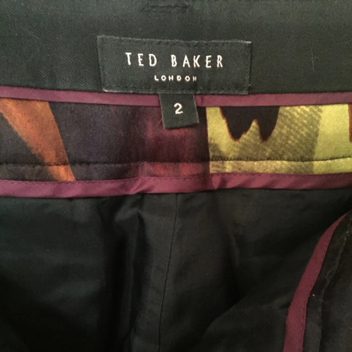 Svarta kostymbyxor med pressveck i storlek 2, vilket motsvarar ca strl M. Använda en gång.
