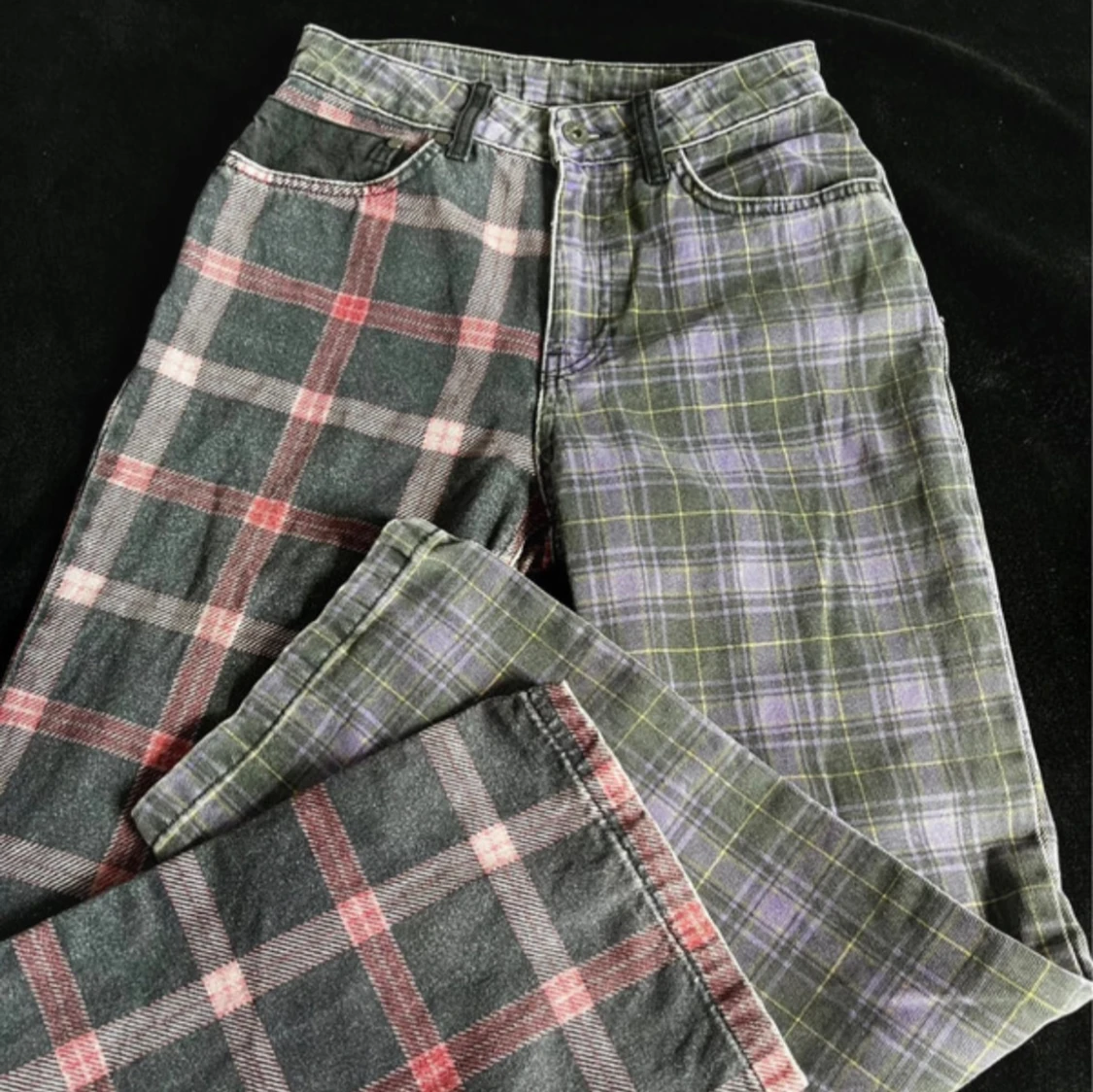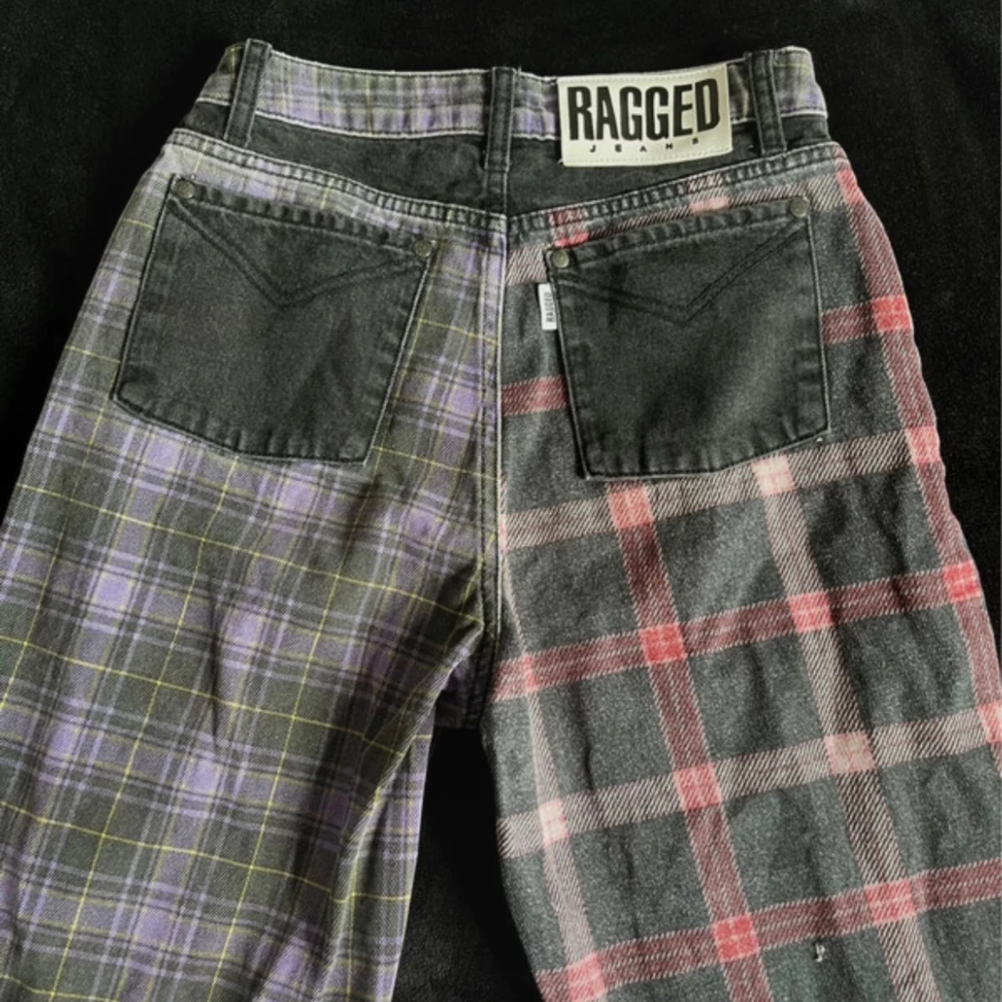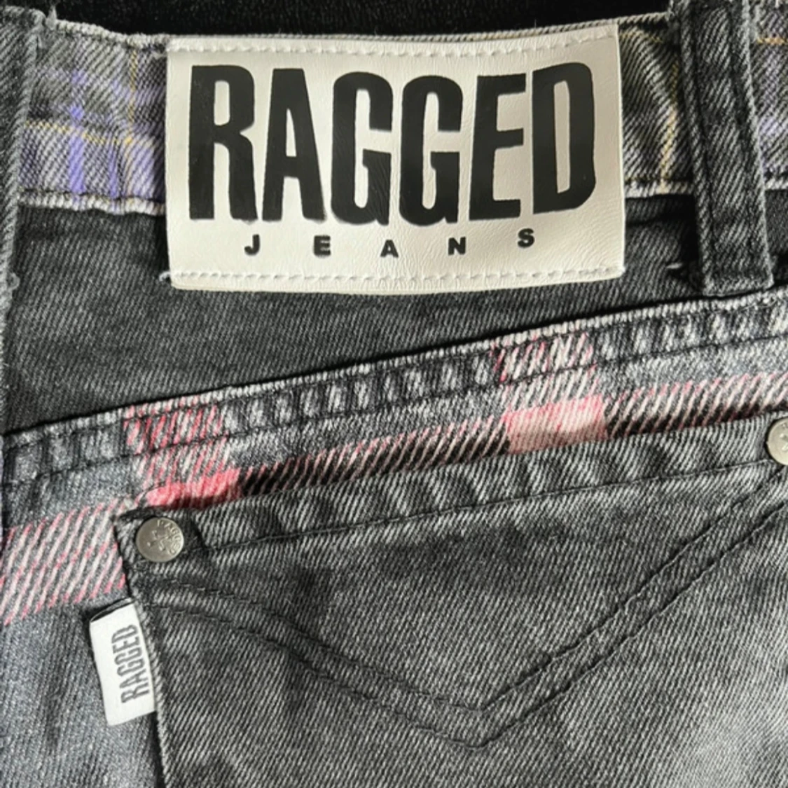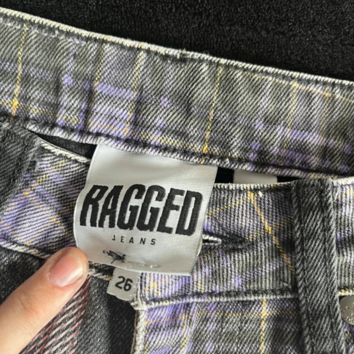 Unika och grymt coola jeans köpa från the tagged priest för några år sedan. Raka i modellen och midwaist/highwaist (sitter precis vid naveln på mig). Använda men i mycket bra skick förutom ett litet hål på ena benet. (Se sista bilden) säljs ej längre. W26 som motsvarar en S