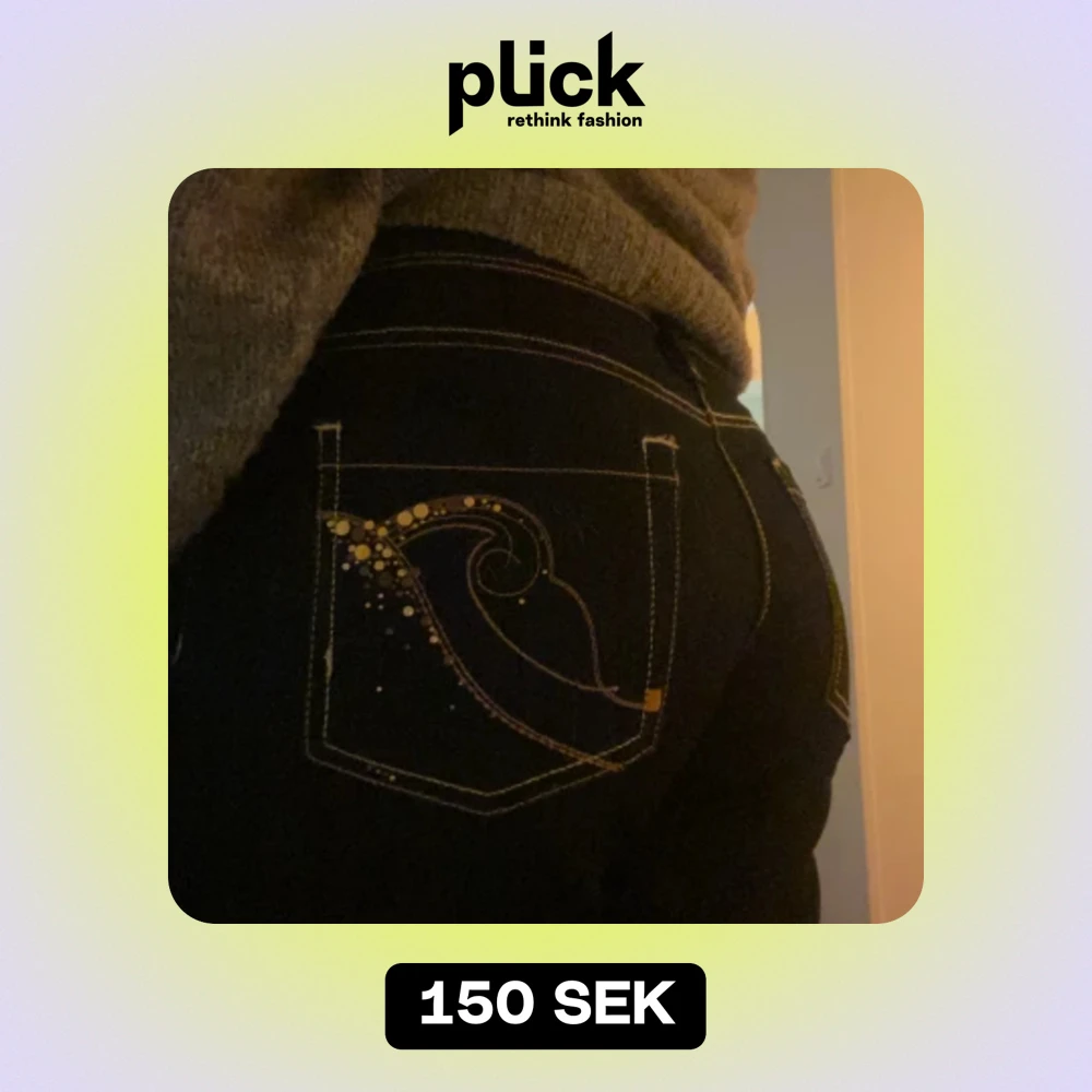 💛Jeans köpta på secondhand 💛Säljer pga storleken inte passar mig på samma sätt som innan 💛Passformen är lågmidjad rak/slim, fint tryck på baksidan