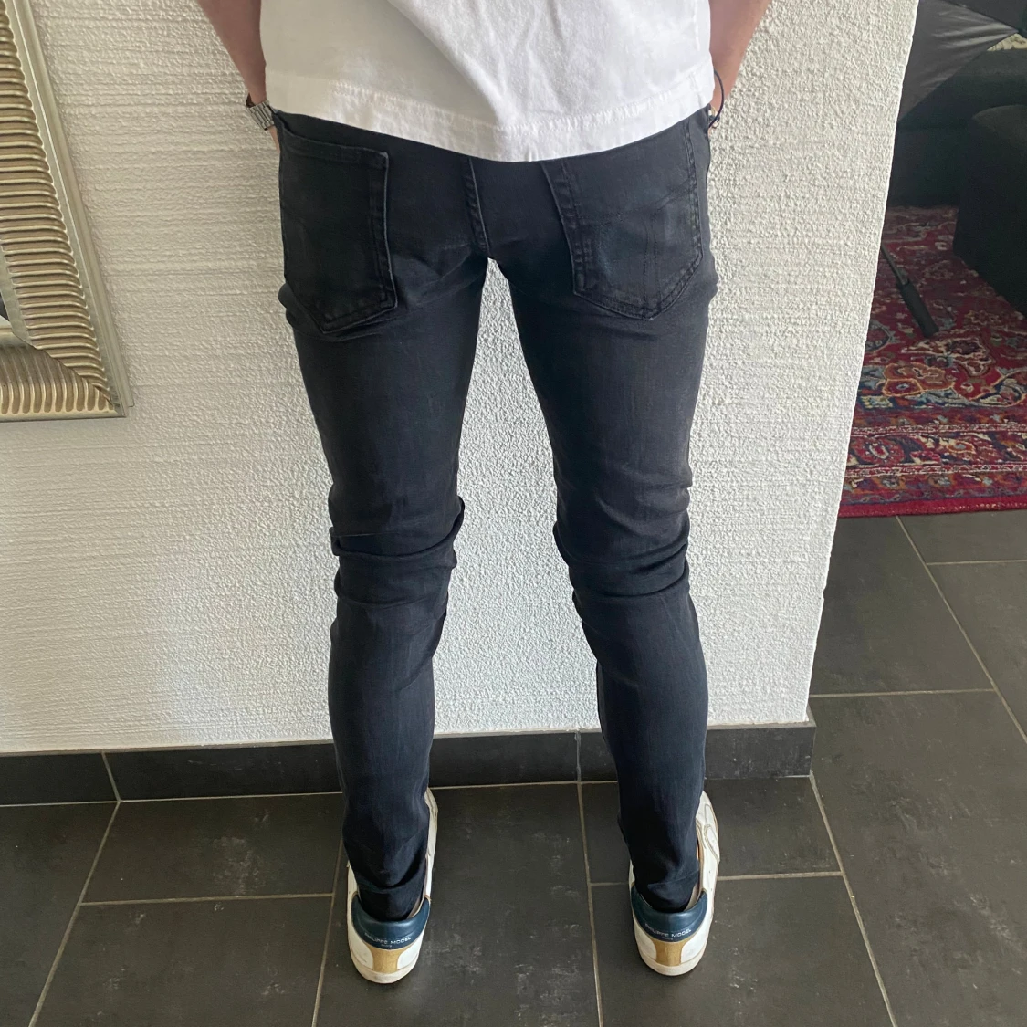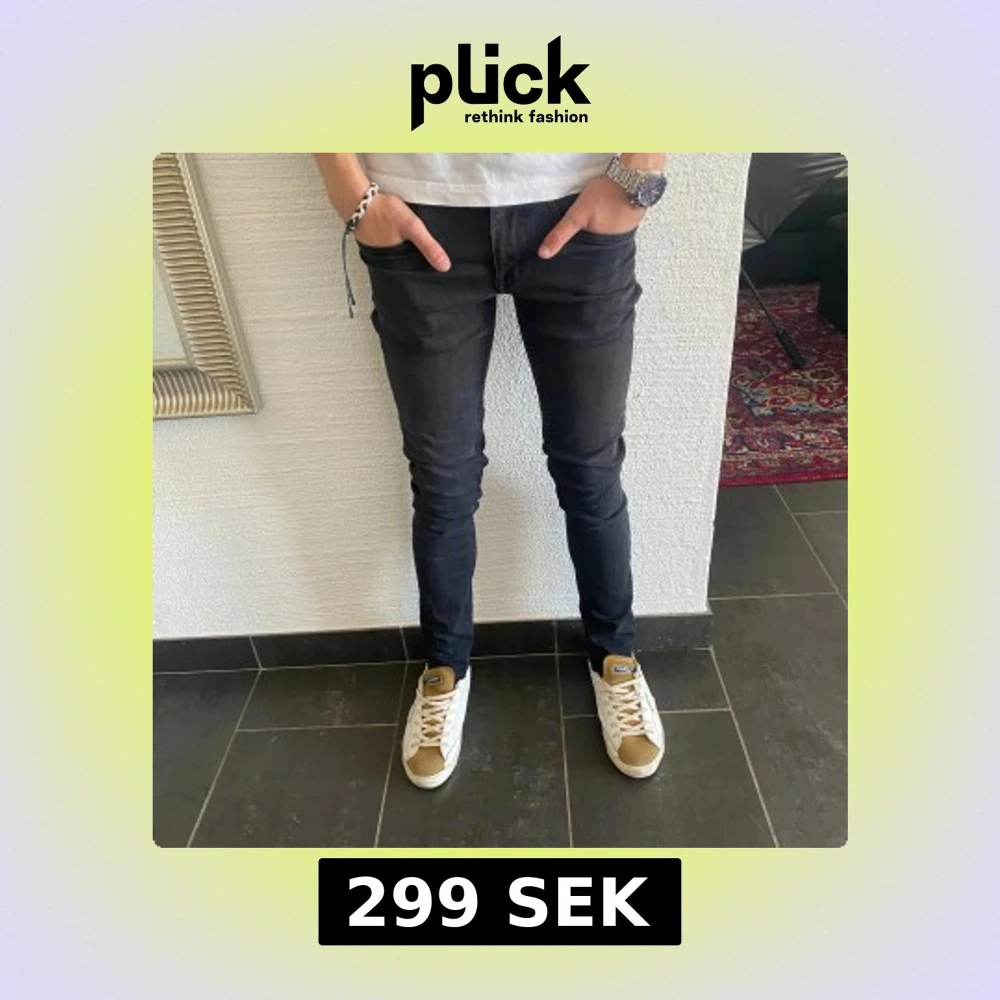 Svarta slim fit jeans i klassisk femficksmodell. Jeansen har en smal passform hela vägen ner och är tillverkade i ett stretchigt jeansmaterial. Snyggt minimalistisk look utan synligt märke på bakfickan. Perfekta för dig som gillar en tajt siluett.