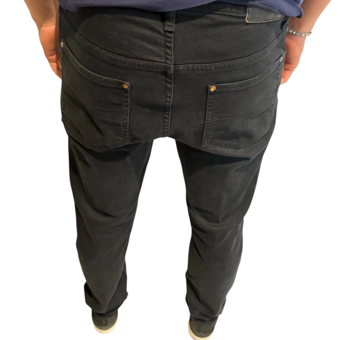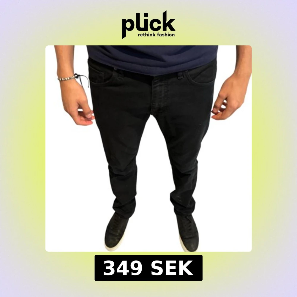 Svarta jeansbyxor med klassisk femficksdesign och raka ben. Snyggt minimalistiskt utseende med svarta nitar på bakfickorna. Passar dig som gillar enkel och stilren look. Materialet är jeans och byxorna har normal passform.