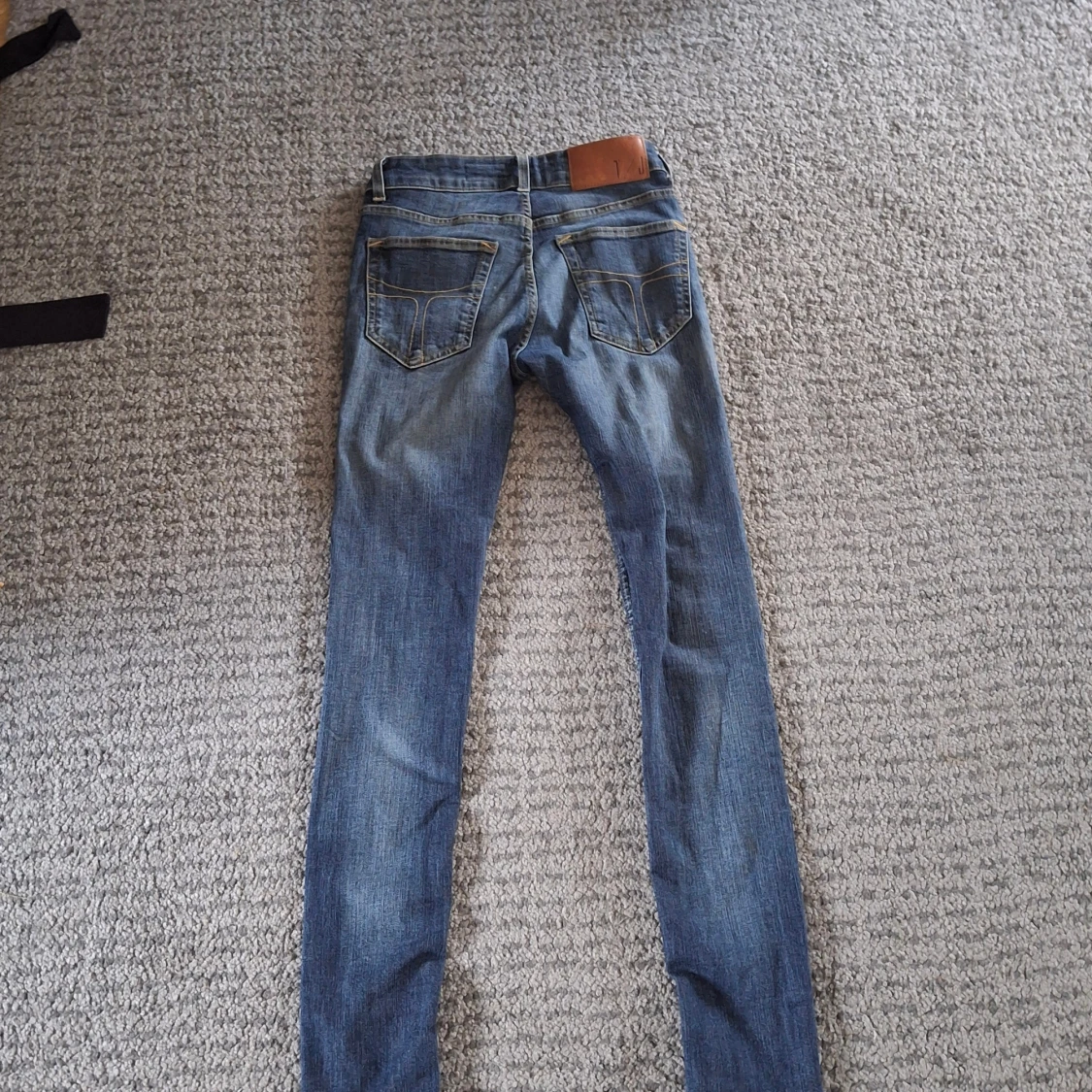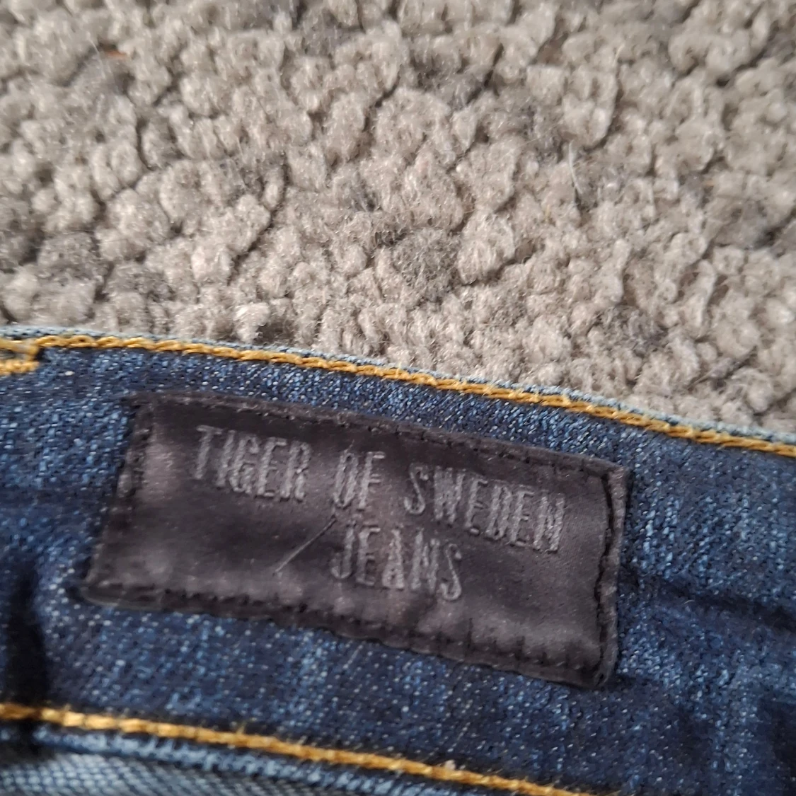 Snygga blå jeans från Tiger of Sweden med klassisk femficksdesign och smal passform. Jeansen har gul kontrastsöm, läderpatch bak och är tillverkade i ett mjukt jeanstyg som sitter tajt längs benen. Perfekta för dig som gillar en stilren och modern look.