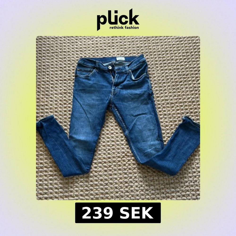 Säljer ett par klassiska blå jeans från Tiger of Sweden, modell Evolve. Jeansen har normal passform, fem fickor och snygga kontrastsömmar. Perfekta för dig som gillar stilrena och tidlösa jeans med raka ben.