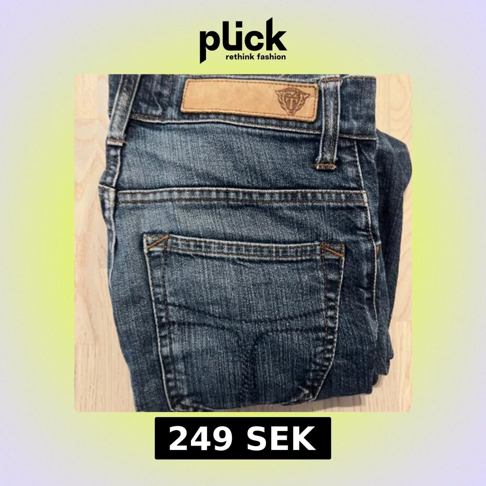 Snygga blå jeans från Tiger of Sweden med klassisk femficksdesign och raka ben. Jeansen har mellanblå tvätt med lätt slitning och kontrastsömmar. Perfekta för dig som gillar en tidlös och clean look. midja 35-36 löngd 99 inseam 79 benöppning 18