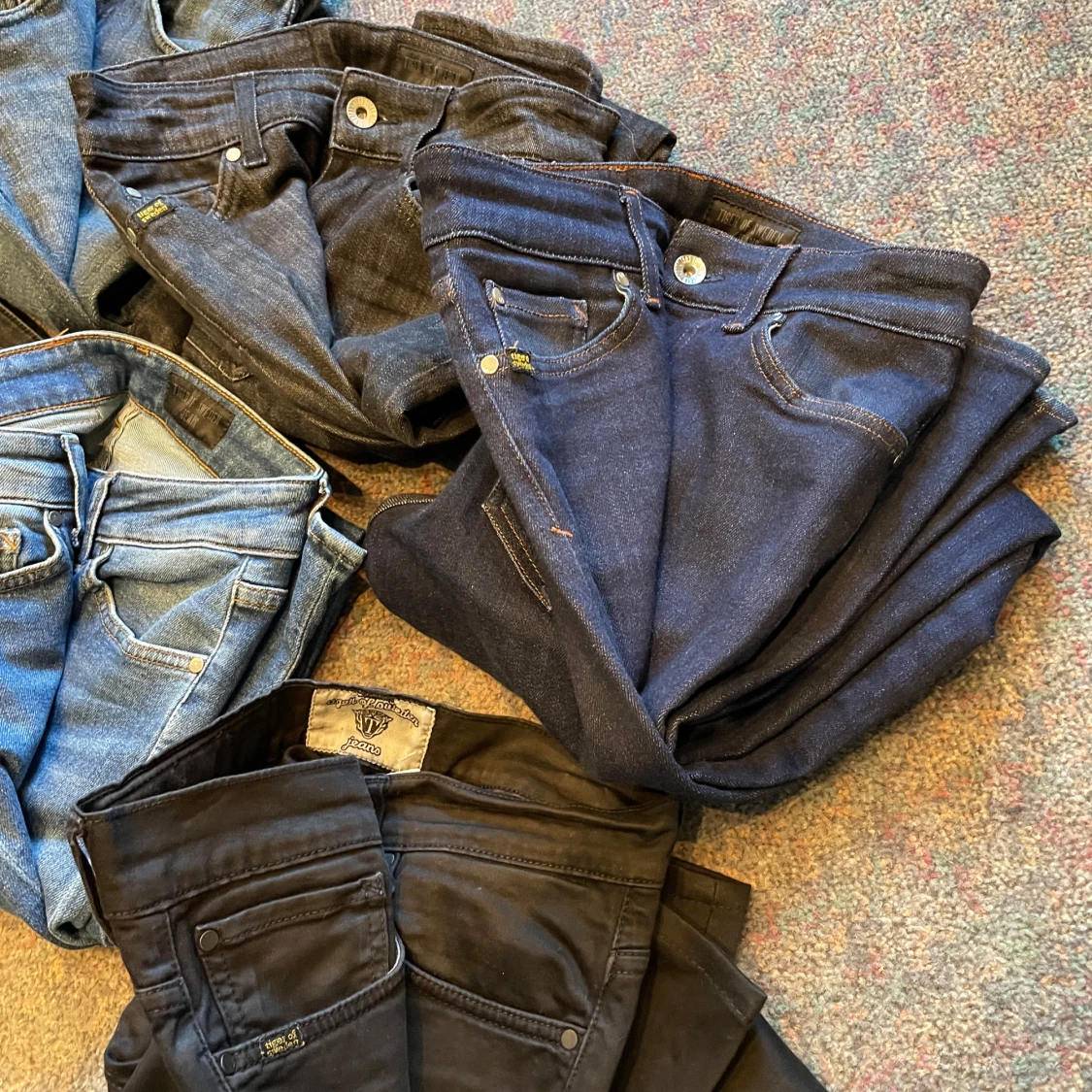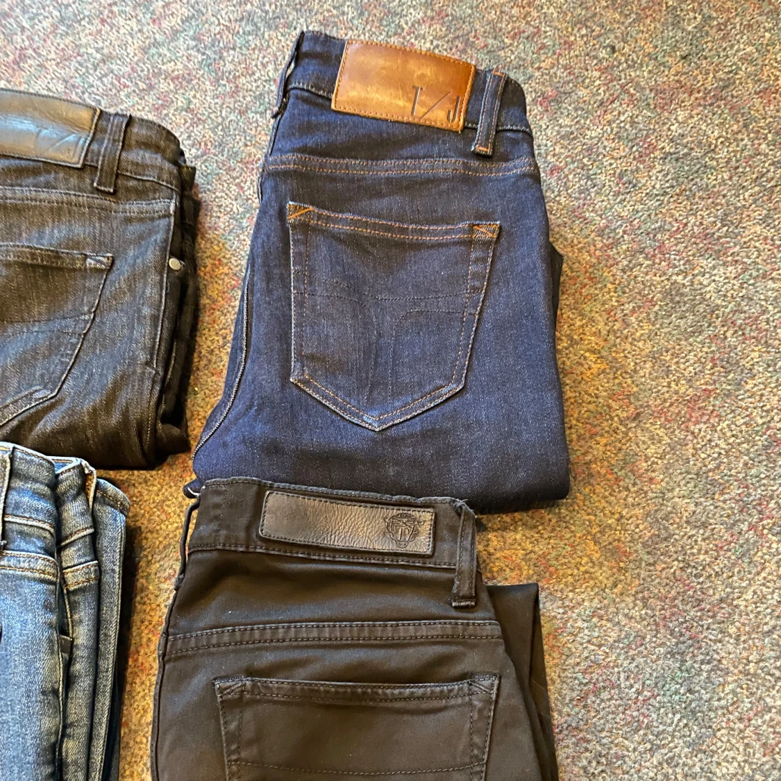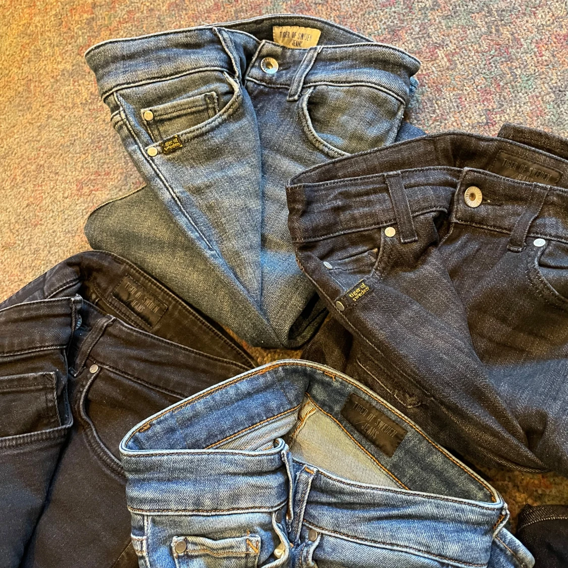 Säljer alla dessa jeans tillsammans för ett riktigt bra pris! Storlekarna är mellan 25/30-26/32. Skicket på jeansen är mycket fint! Obs! De ljusa i mitten är sålda!