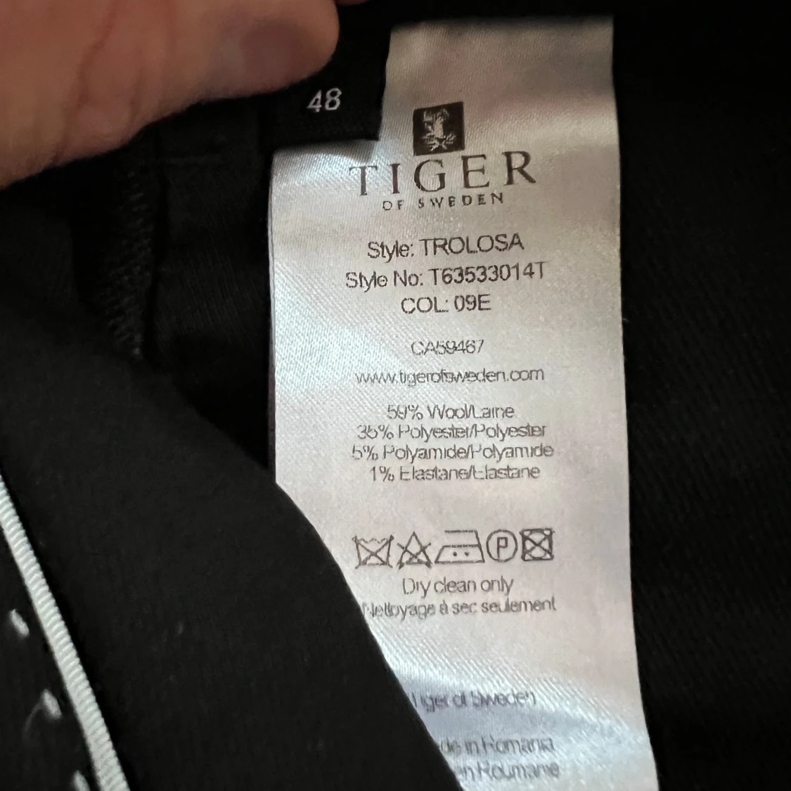 Mörk grå kostymbyxor från tiger of sweden, varma så funkar fint nu till vintern. Storlek 48. Fint skick! Hälsningar// Ludvig