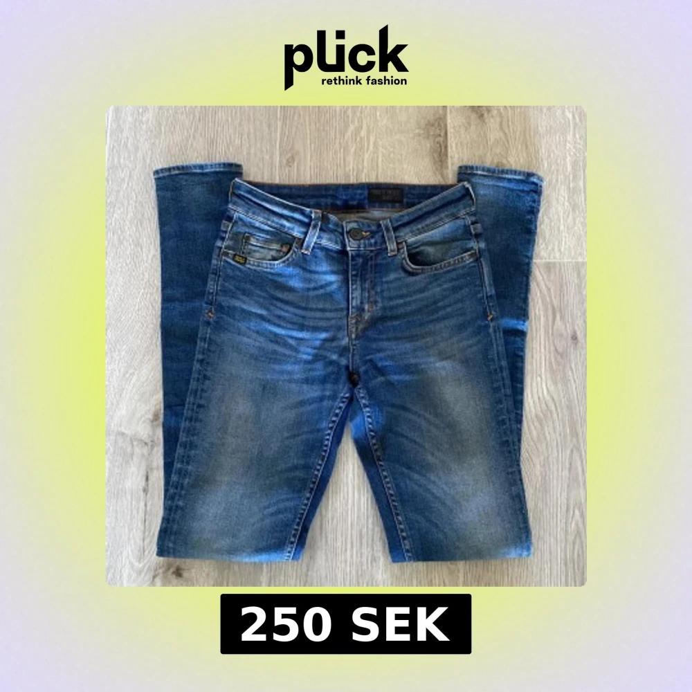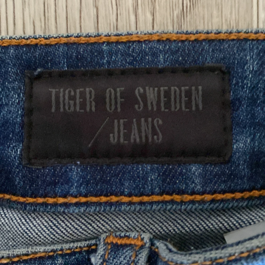 Snygga blå jeans från Tiger of Sweden med klassisk femficksdesign och bruna detaljer på bakfickan. Jeansen är slim fit och är tillverkade i slitstarkt denimtyg med snygg tvätt och kontrastsömmar. Byxorna är i W27 men passar mer W28 och W29