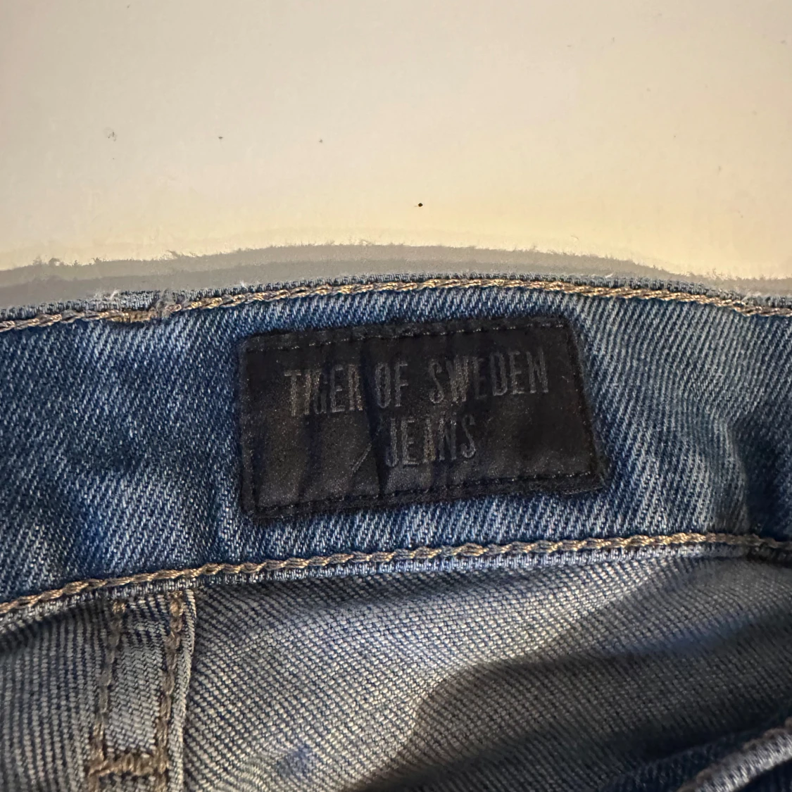 Säljer ett par klassiska blå jeans från Tiger of Sweden. Jeansen har raka ben, normal passform och snygga detaljer på bakfickorna. Tillverkade i slitstarkt denimtyg som ger en tidlös look. Perfekta för dig som gillar stilrena och enkla jeans.