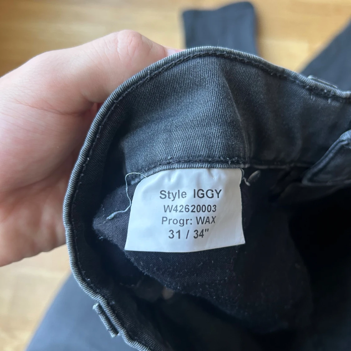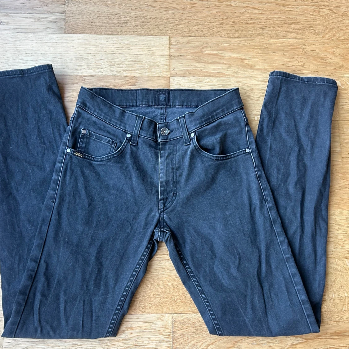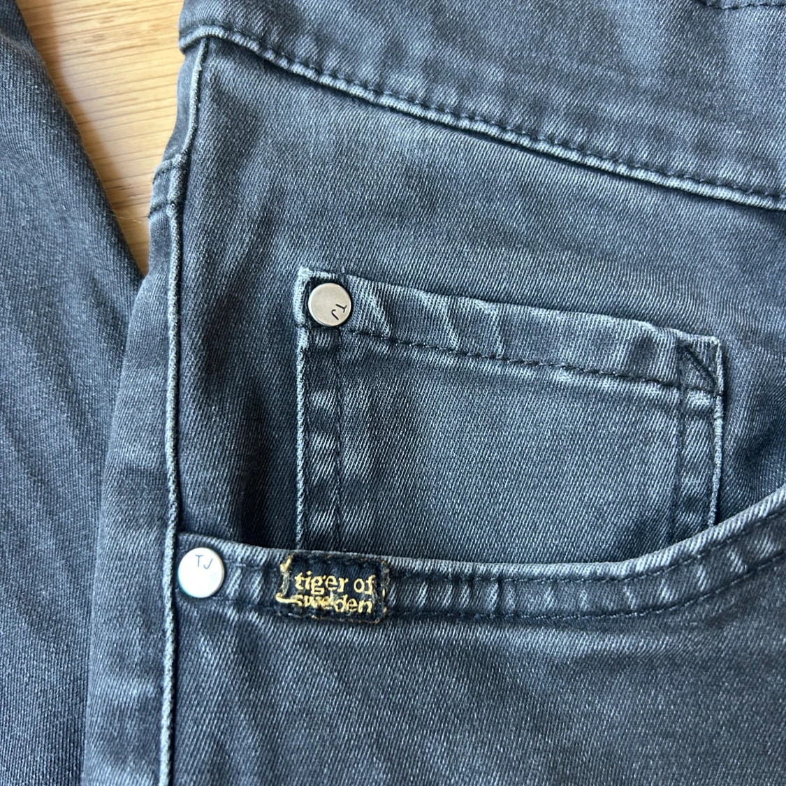 Snygga svarta jeans från Tiger of Sweden med klassisk femficksdesign. Jeansen har silverfärgade nitar och diskret logga vid myntfickan. Perfekt passform och stilren look som funkar till det mesta. Liknar Replay ambass i passformen.