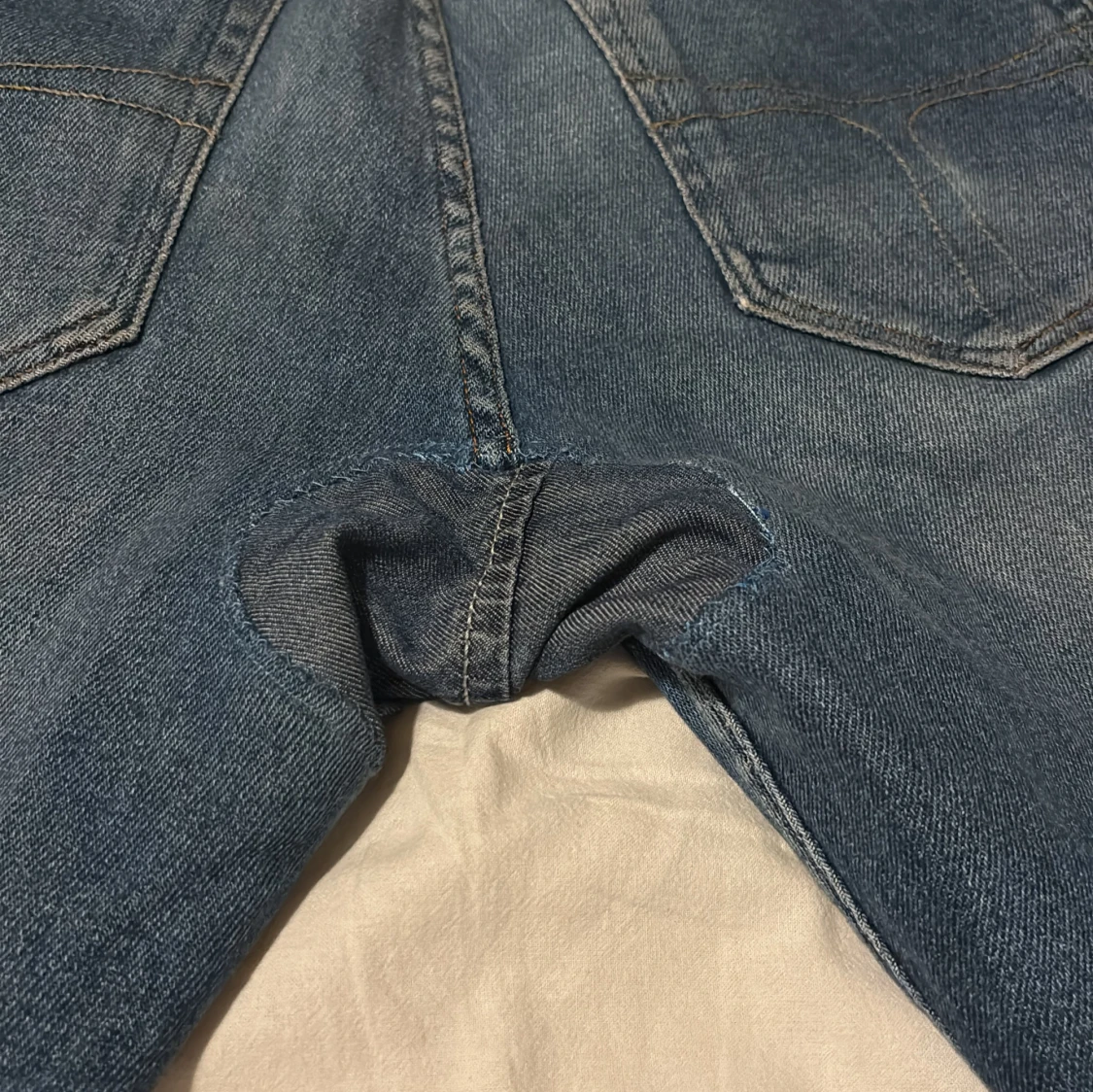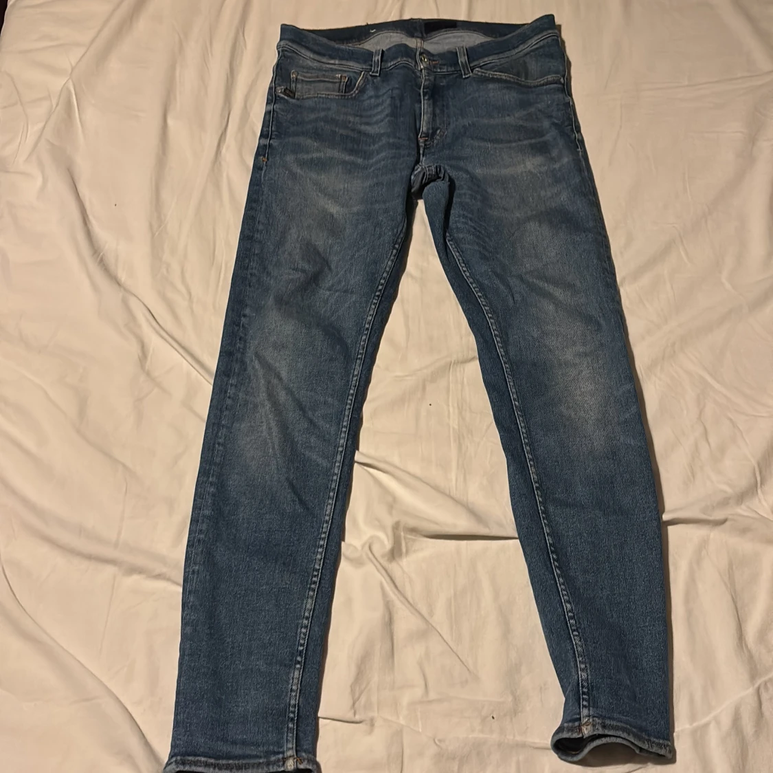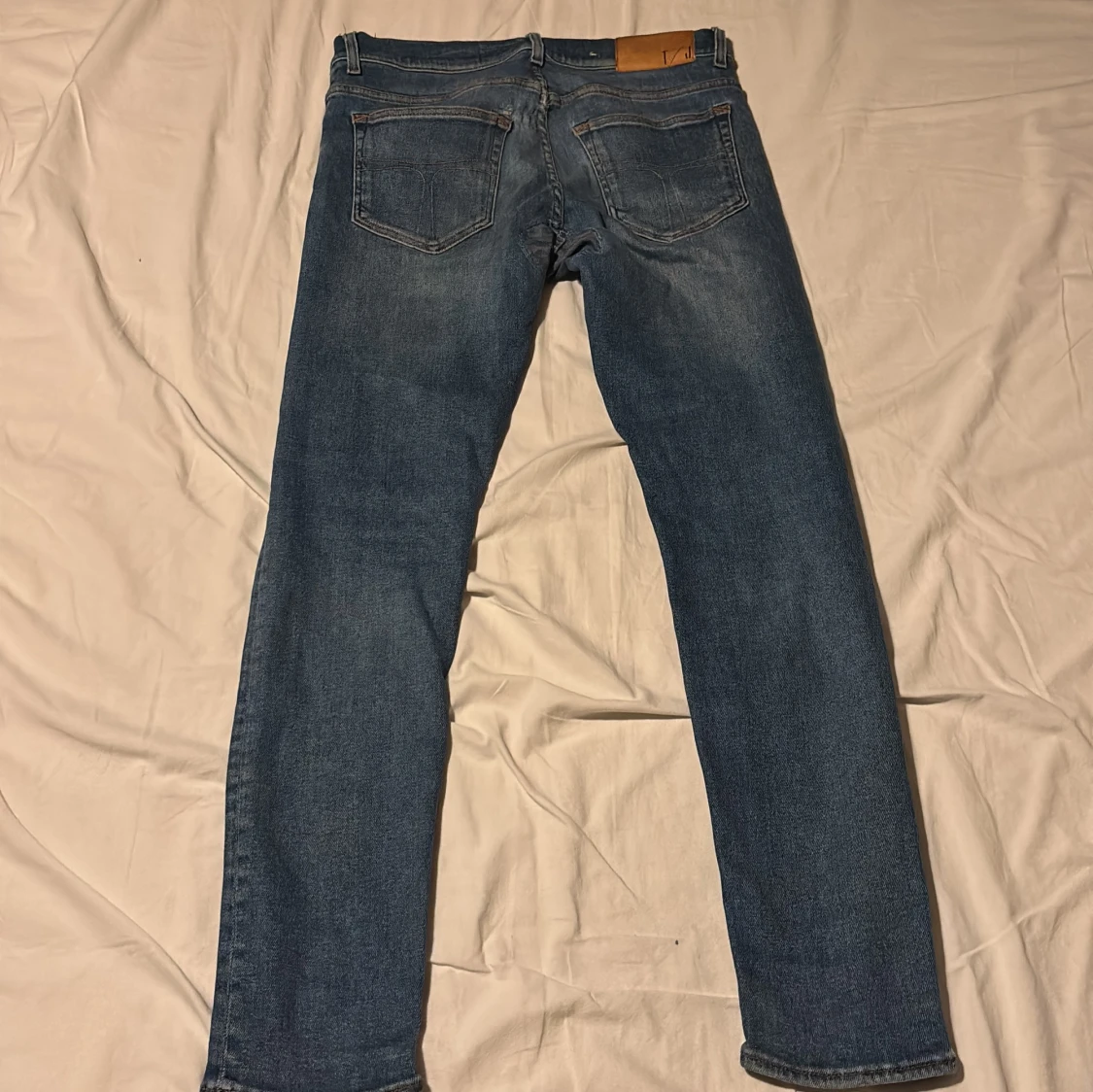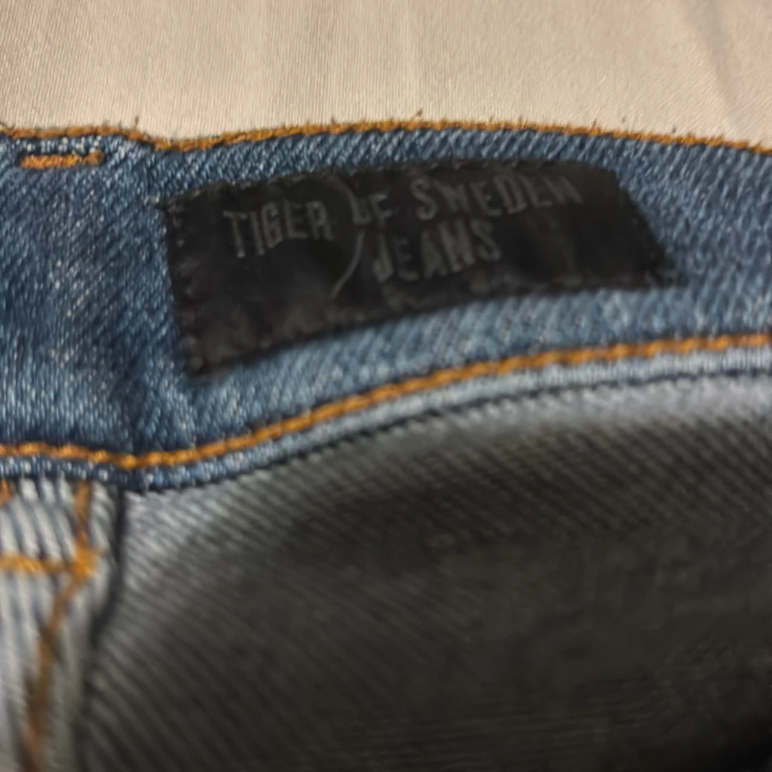 Snygga blå jeans från Tiger of Sweden med klassisk femficksdesign och raka ben. Jeansen har en mellanblå tvätt med lätt slitning och är tillverkade i bomull. Perfekta för dig som gillar stilrena och tidlösa jeans. OBS! har haft ett hål vid skrevet men igen sytt syns inte när man har på sig dem. Skriv för fler bilder på tillexempel när ja har på mig dem