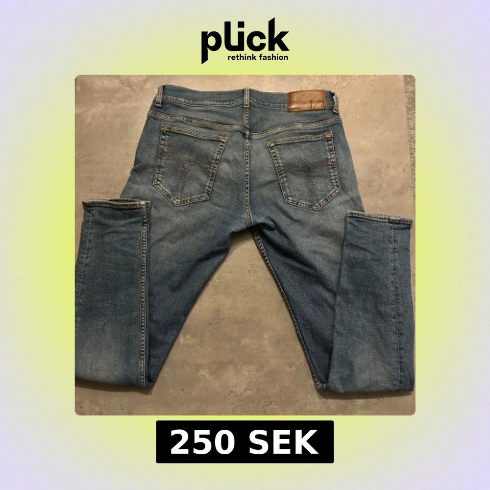 Snygga blå jeansbyxor. De har en modern passform och är perfekta för en avslappnad stil. Byxorna har en lätt tvättad look som ger dem en trendig känsla. Tvär feta och är slim 32/32