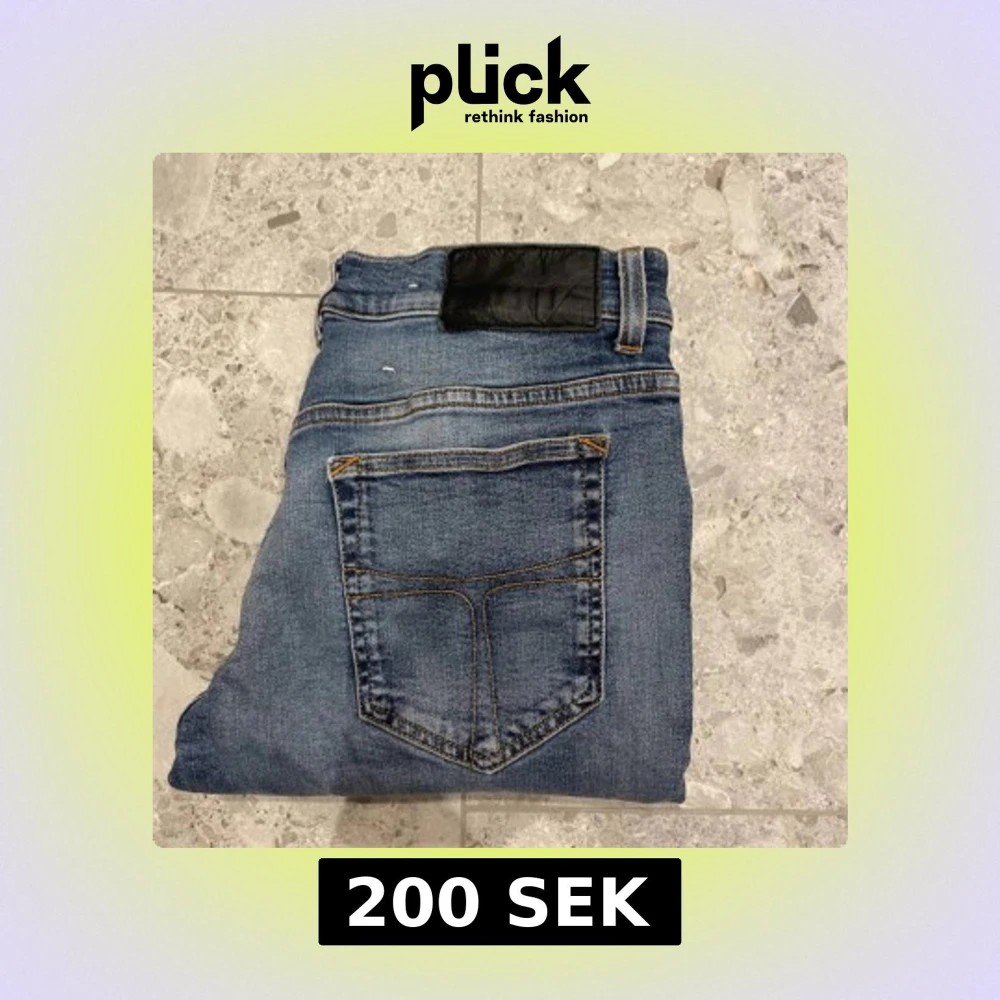 Klassiska blå jeans med en bakficka och kontrastsömmar. Byxorna har en svart patch vid linningen och är i en rak modell. Perfekta till vardags för en avslappnad stil.