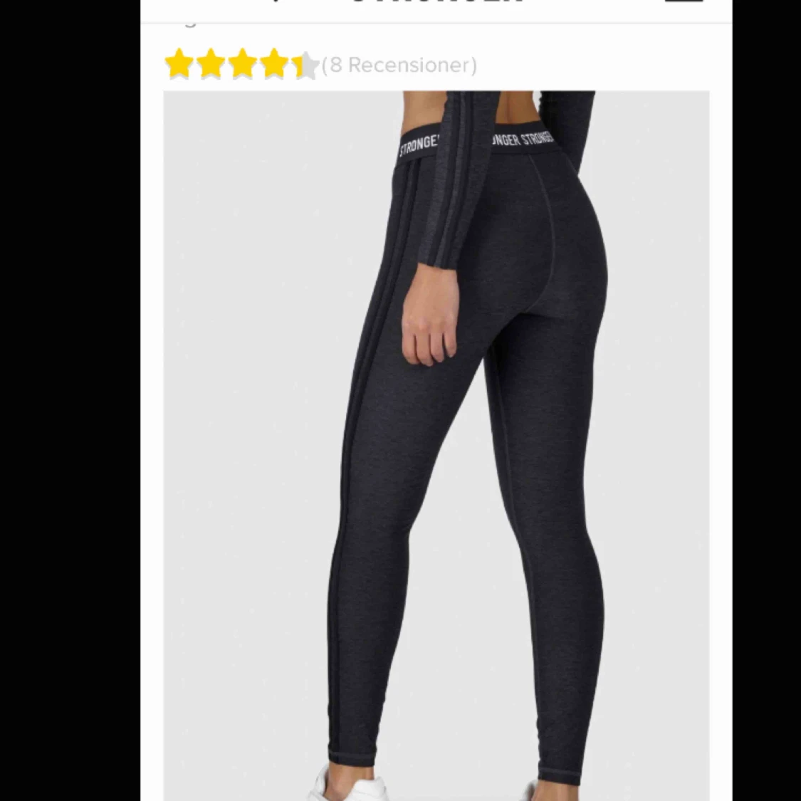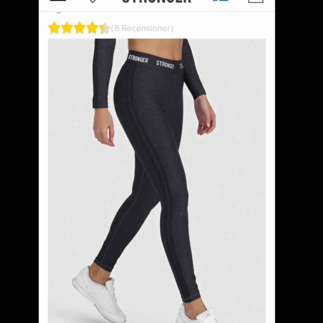 Träningstights från stronger! Endast använda 2 ggr, säljer pga inte min stil tyvärr. Höga i midjan och mörk mörkgråa! Svett syns ej igenom. Pris kan diskuteras!