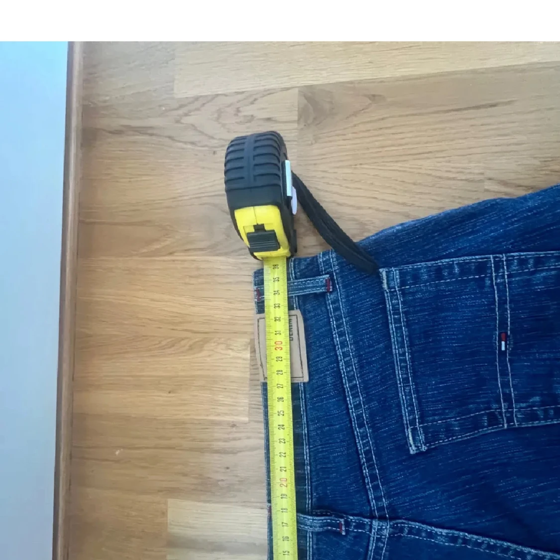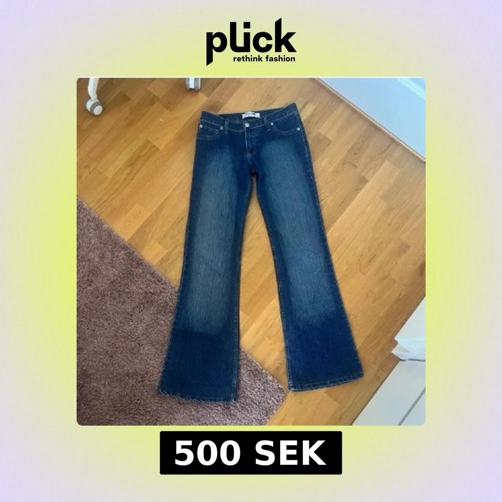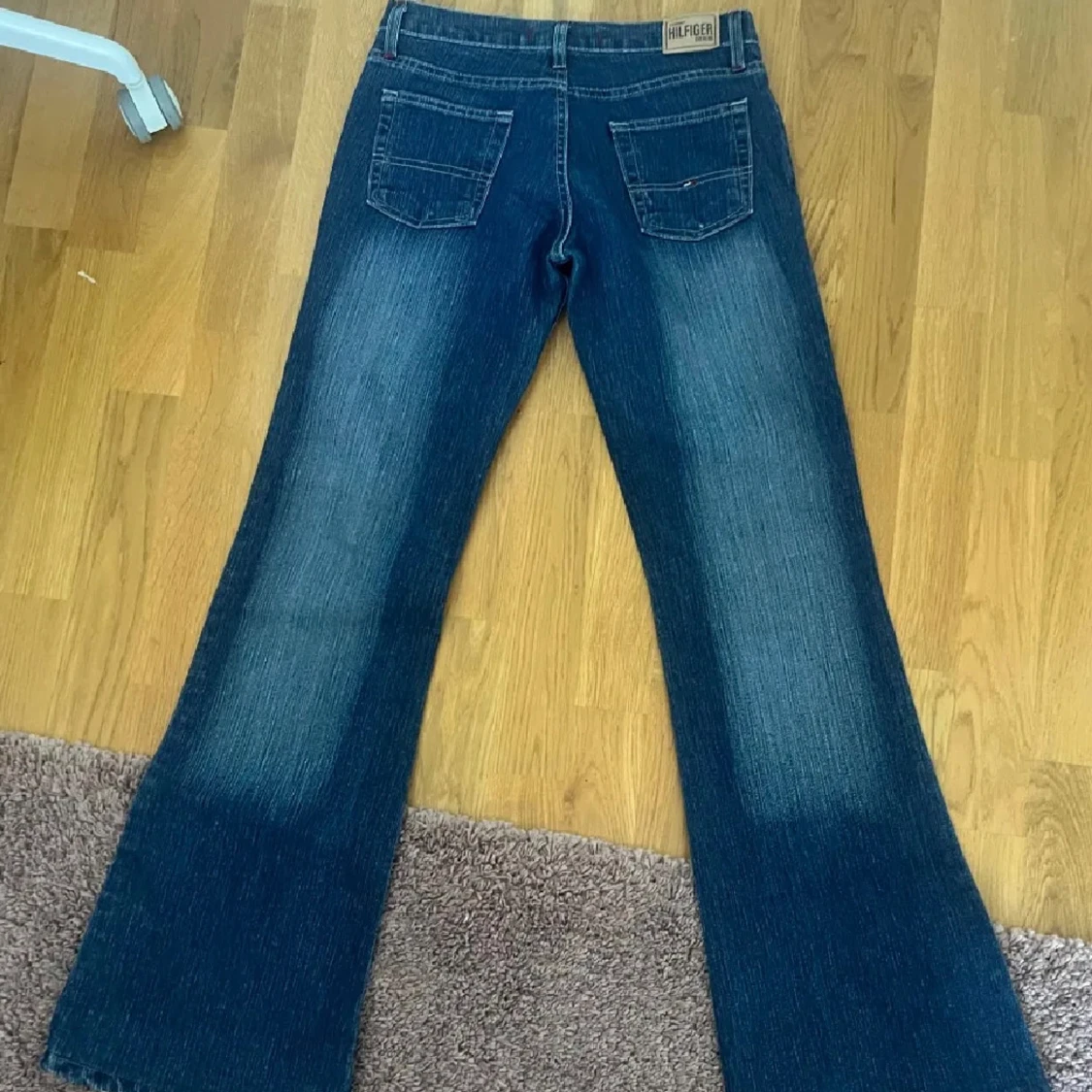 Snygga blå jeans från Tommy Hilfiger med bootcut passform. Klassisk femficksmodell med tydliga sömmar och Hilfiger-logga på bakfickan. Jeansen är i denim med lätt slitning och har normal midja. Perfekta för dig som gillar retrovibbar och bredare ben. de är i storlek M men små o storleken så passar absolut S