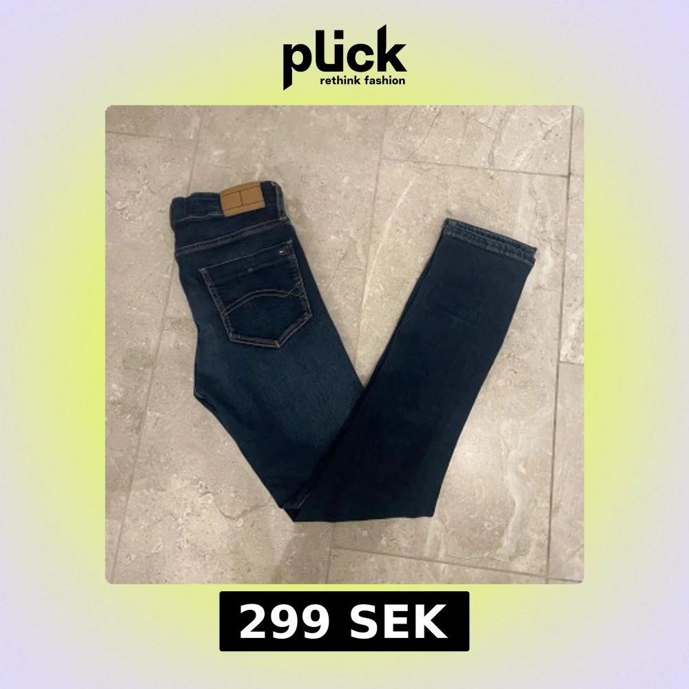 Snygga mörkblå jeans från Tommy Hilfiger i slim fit-modell. Klassisk femficksdesign med diskret Hilfiger-logga på bakfickan. Jeansen är tillverkade i bomull med lite stretch för skön passform. Perfekta för dig som gillar stilrena och tidlösa jeans. Storlek 164