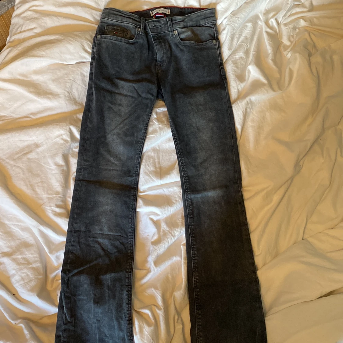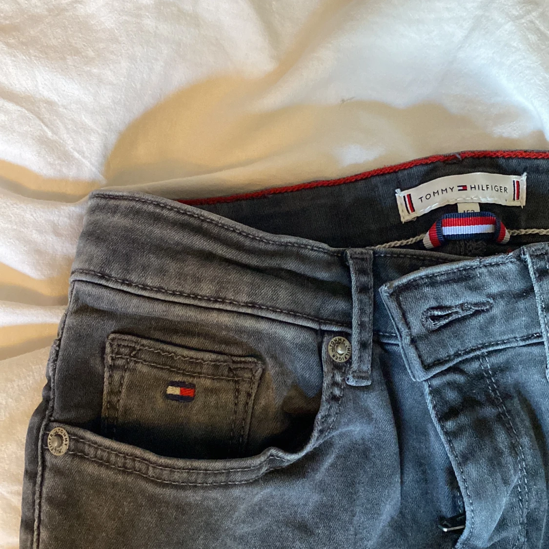 Low waist grå/svart Tommy Hilfiger jeans i storlek 152. Inte använda och är fullt hela. Det är väldigt stretschiga jeans så passar även någon som bär storlek 34. Ordinarie pris 800kr men väljer att sälja för 500 plus frakt.